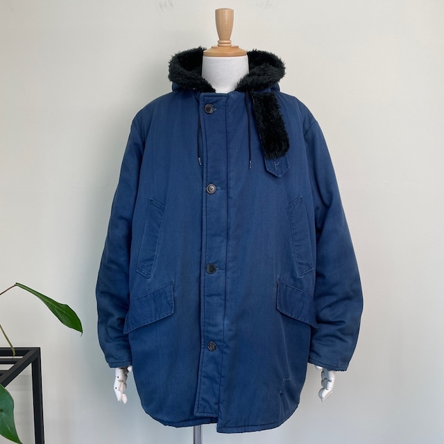 80s 90s USA製 WORK WEAR 中綿 フードコート ヴィンテージ 古着 紺 ネイビー ワークジャケット アウター 裏キルティング 80年代 90年代 ビンテージ L 25120718