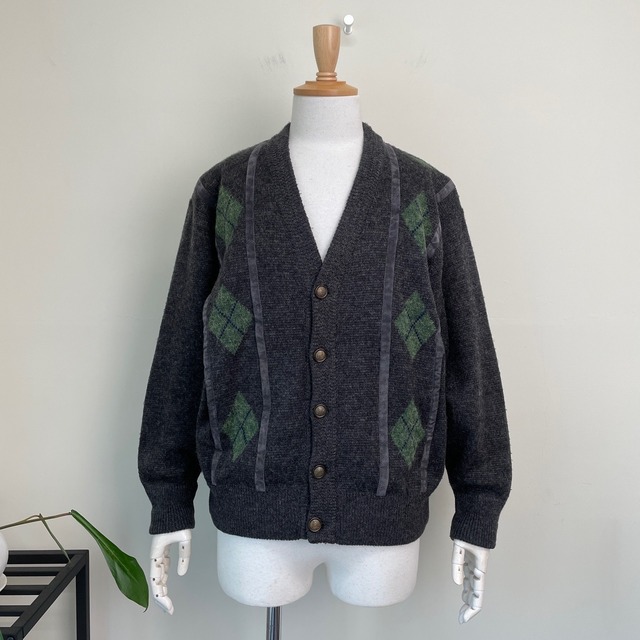 80s 90s モヘア ニット カーディガン アーガイル ヴィンテージ 古着 グレー ユーロ 80年代 90年代 ビンテージ 25112303