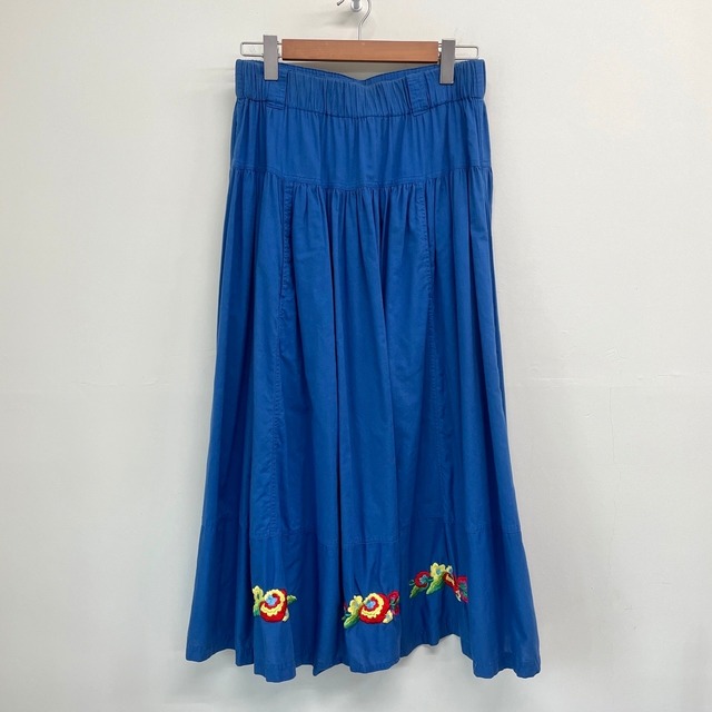 70s 80s メキシカンスカート フラワー刺繍 コットン ヴィンテージ 古着 花 青 ブルー メキシコ レトロ 70年代 80年代 ビンテージ レディース 25092003