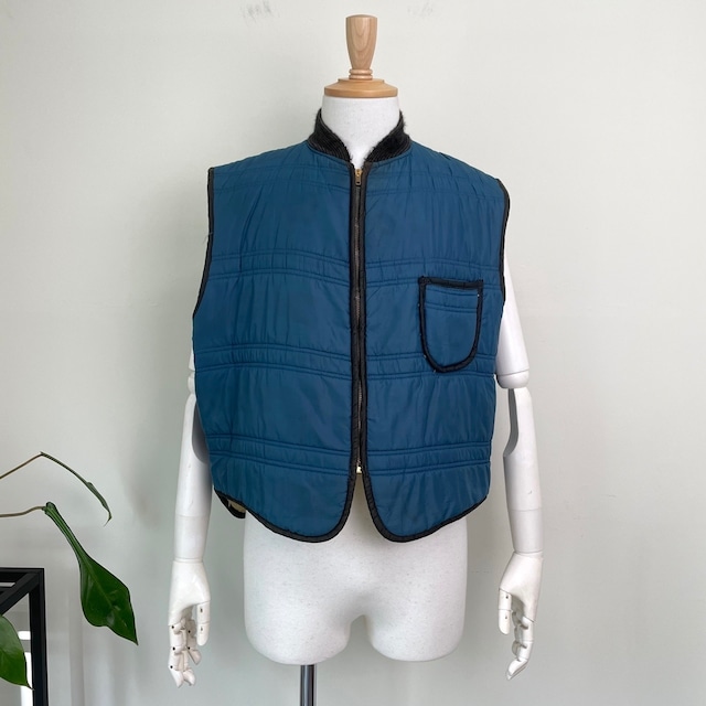 60s 裏ボア ナイロンベスト ジップアップ ヴィンテージ 古着 青 ブルー TALON 60年代 ビンテージ L アウトドア ワーク キルティングベスト 25120911