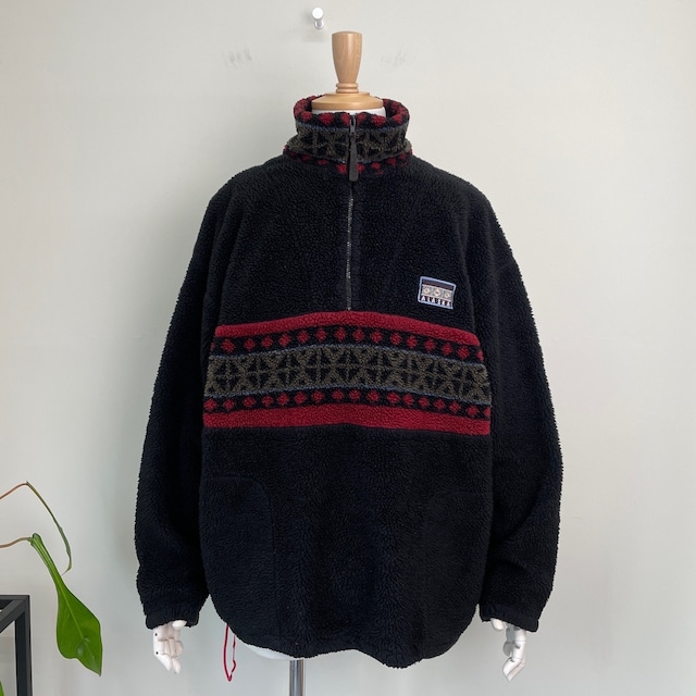 90s USA製 ALASKA ネイティブ柄 ボアフリースジャケット ヴィンテージ 古着 黒 ブラック フルジップ OURAY アラスカ 90年代 ビンテージ L 25122203
