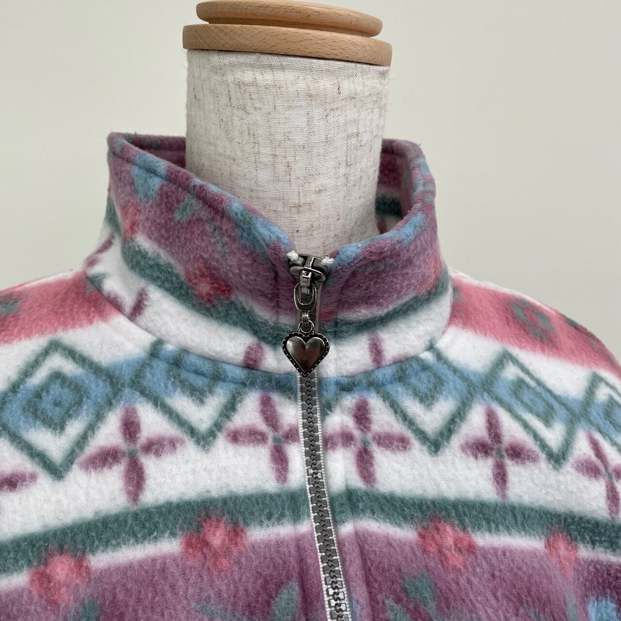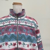 古着 ALFRED DUNNER 花柄 フリースジャケット レディース ピンク レトロ 25031115