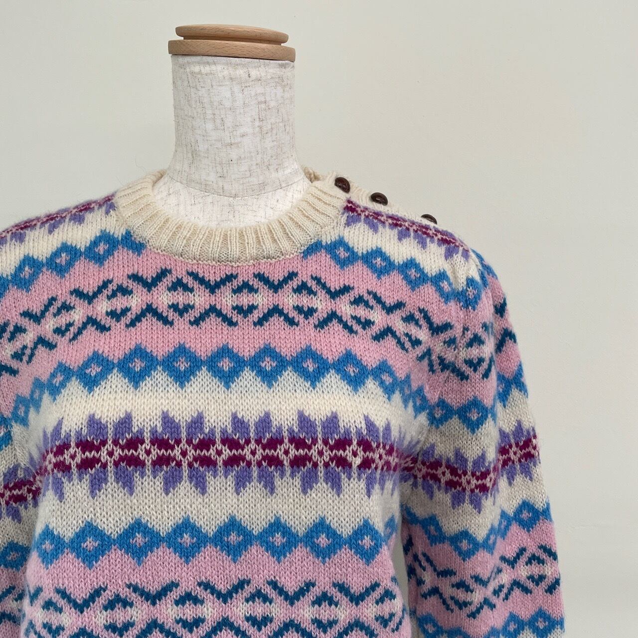 古着 MARSH LANDING 雪柄 フェアアイル ニット セーター レディース レトロ 柄ニット ヴィンテージ ビンテージ L ウール 25031121
