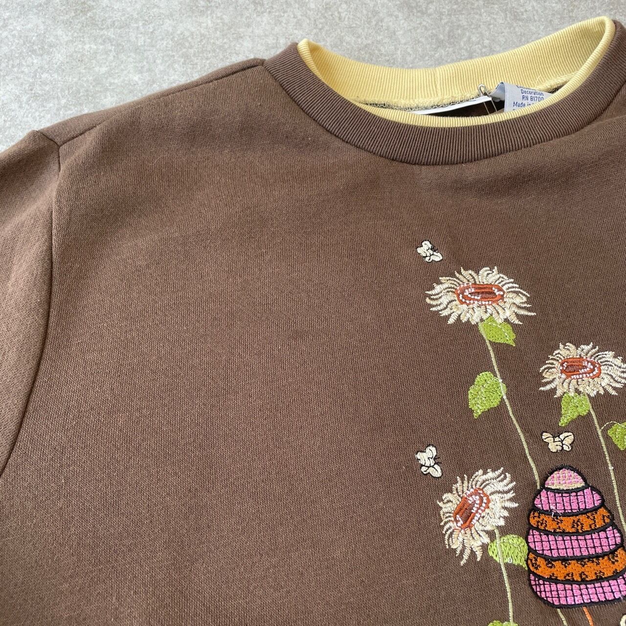 古着 花 キノコ スウェット レディース 茶 ブラウン レトロ ヴィンテージ 刺繍 フラワー きのこ トレーナー 25040502