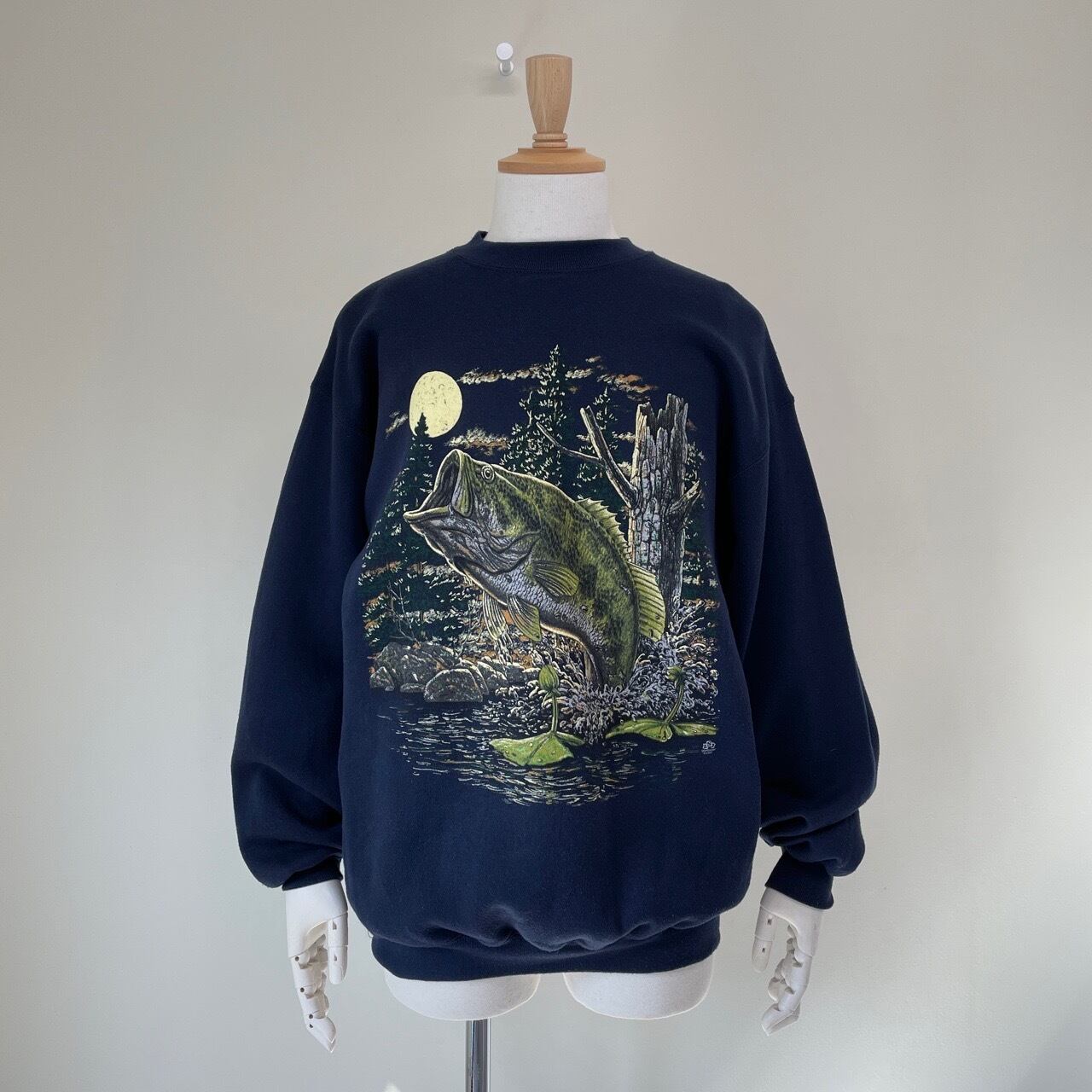 90s デッドストック ブラックバス スウェット 古着 ヴィンテージ 釣り フィッシング 魚 90年代 ビンテージ deadstock DEAD STOCK トレーナー 紺 ネイビー 25040717