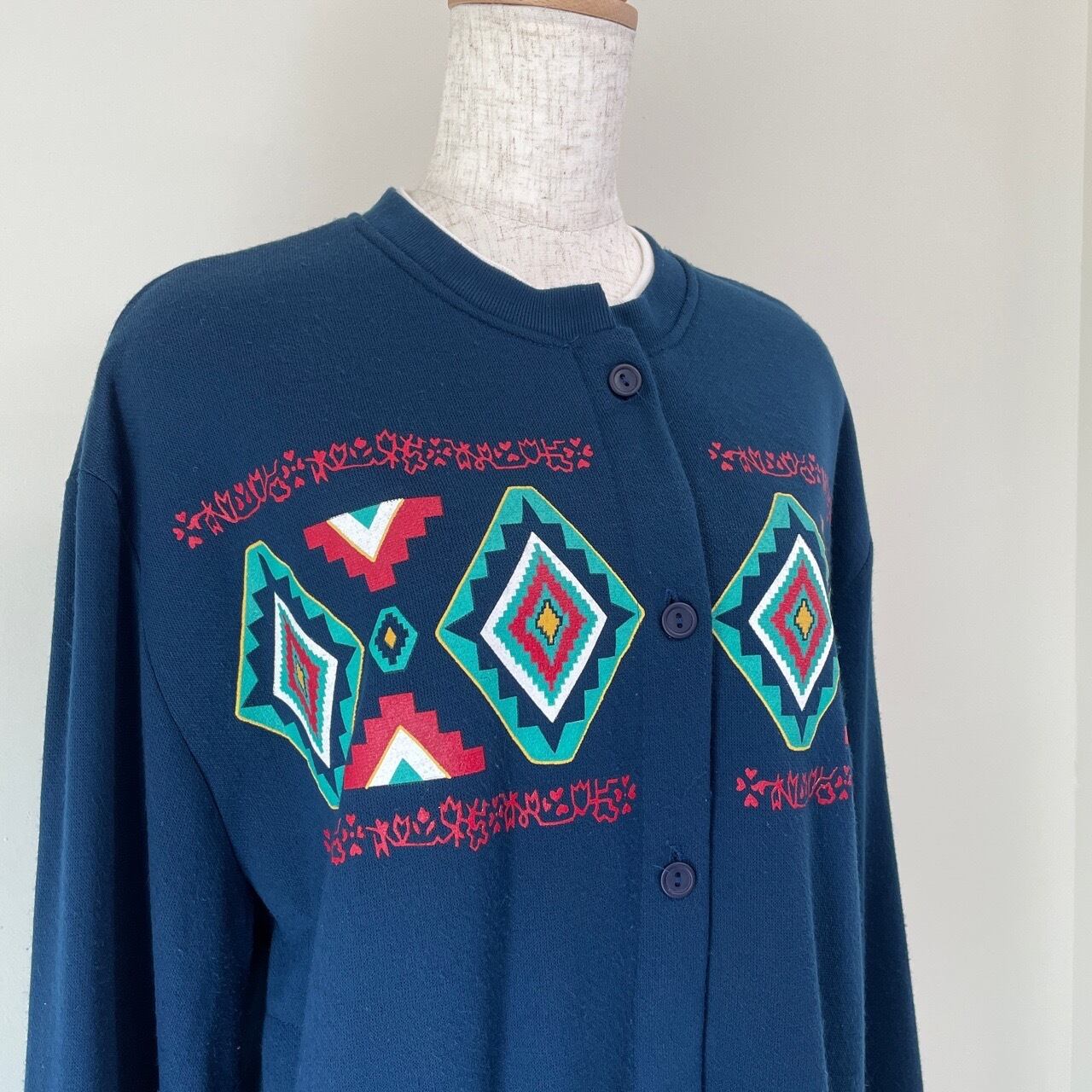 古着 ネイティブ柄 スウェットカーディガン ヴィンテージ レディース レトロ 紺 ネイビー ビンテージ 90s 25042105