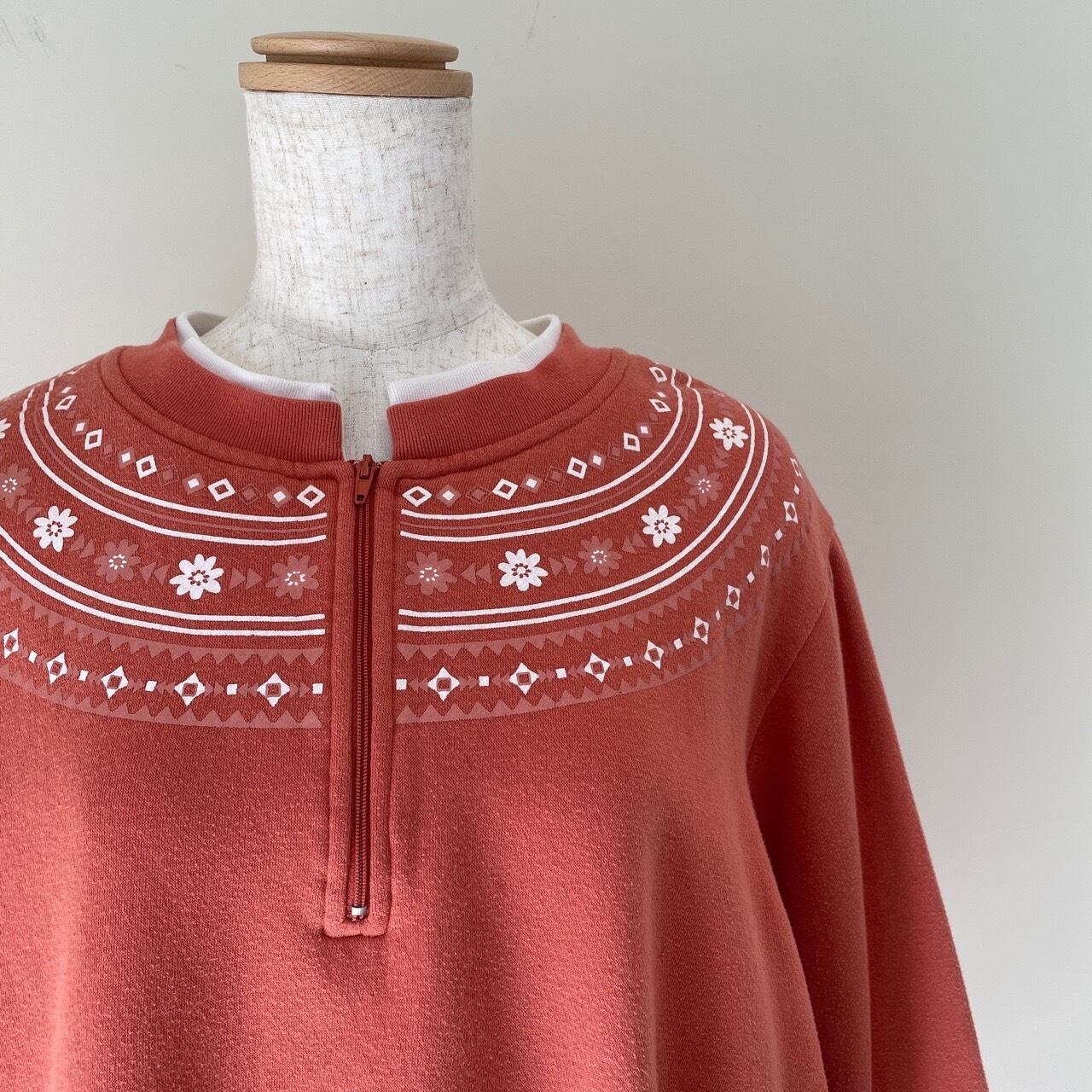 古着 BLAIR 花柄 ネイティブ柄 ハーフジップ スウェット レトロ レディース オレンジ 橙 レイヤードネック ヴィンテージ ビンテージ トレーナー 25050312