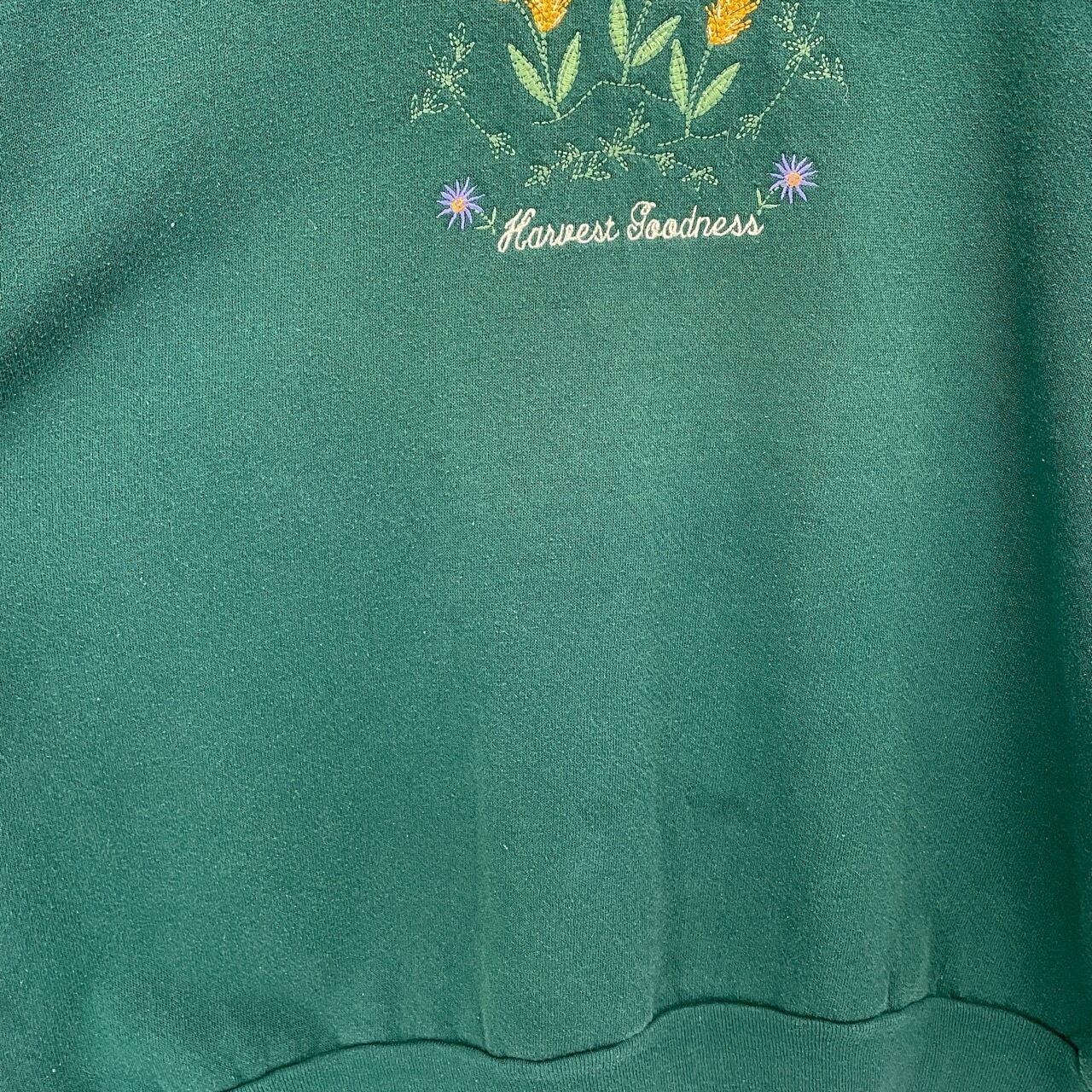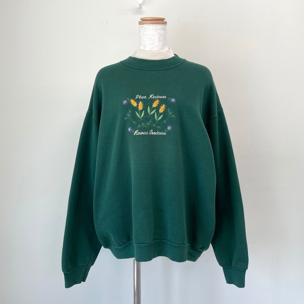 90s 花 刺繍 スウェット レトロ 古着 レディース 緑 グリーン フラワー レイヤードネック ヴィンテージ 90年代 ビンテージ トレーナー カントリー 25050401