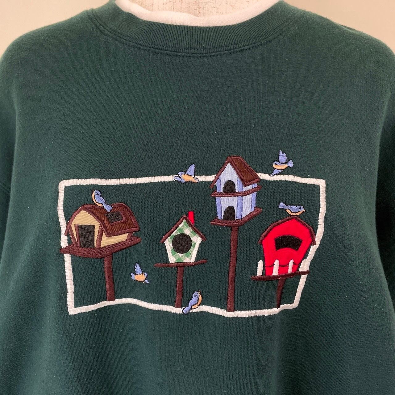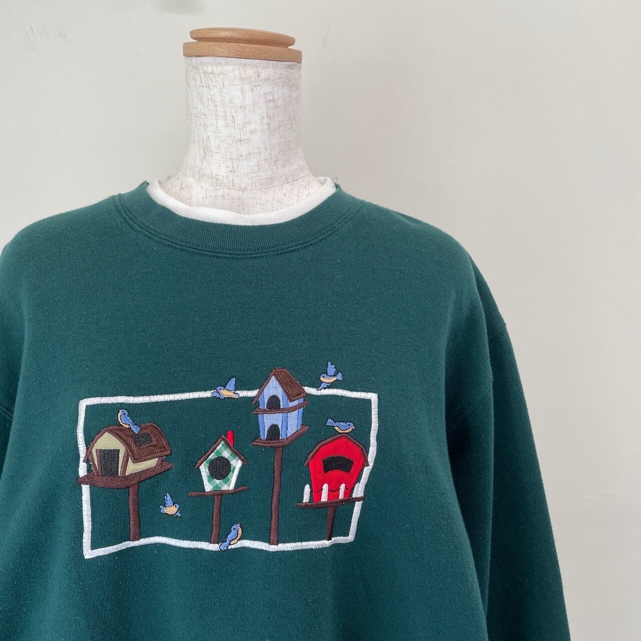 90s 小鳥 レトロ カントリー 刺繍 スウェット 古着 レディース ヴィンテージ 緑 グリーン アニマル 動物 ビンテージ トレーナー 90年代 25050601