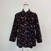 古着 花柄 コーデュロイシャツ 黒 ブラック ヴィンテージ レトロ レディース ブラウス 太畝 コットン ハンドメイド 長袖シャツ ビンテージ 25051905