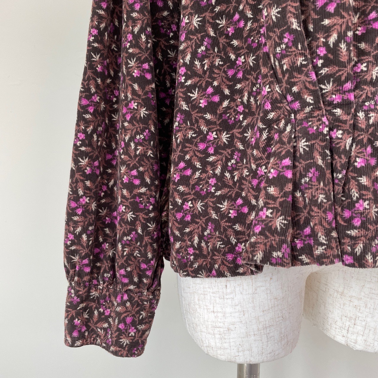 90s April Cornell 花柄 コーデュロイブラウス 古着 ヴィンテージ レディース レトロ 長袖シャツ 茶 ブラウン 90年代 ビンテージ インド綿 25051906