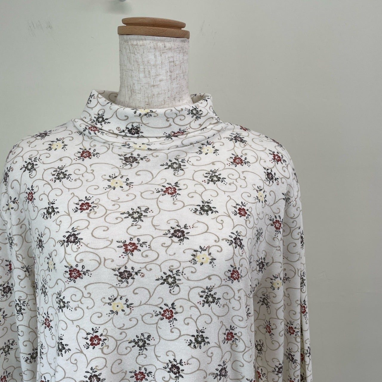 古着 花柄 タートルネック カットソー レディース レトロ 長袖Tシャツ ヴィンテージ ビンテージ ロンT アイボリー 生成り 25051913