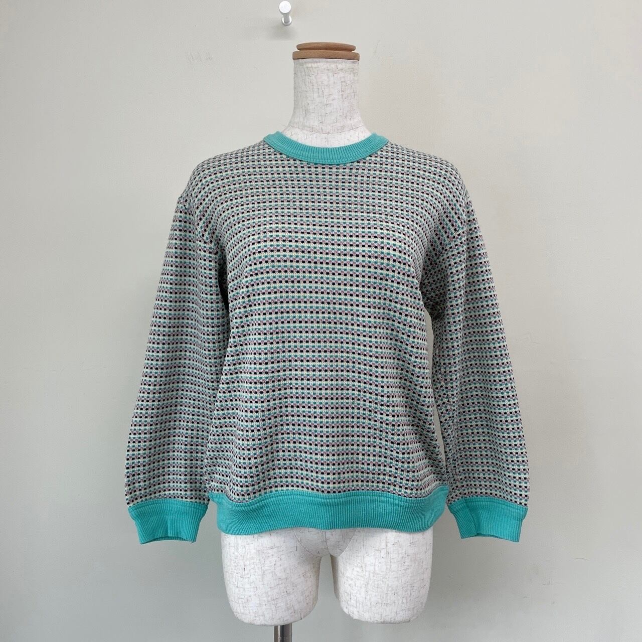古着 レディース ボーダー ジャカード カットソー 長袖Tシャツ ヴィンテージ マルチカラー カラフル チェック柄 ビンテージ トップス 25051914