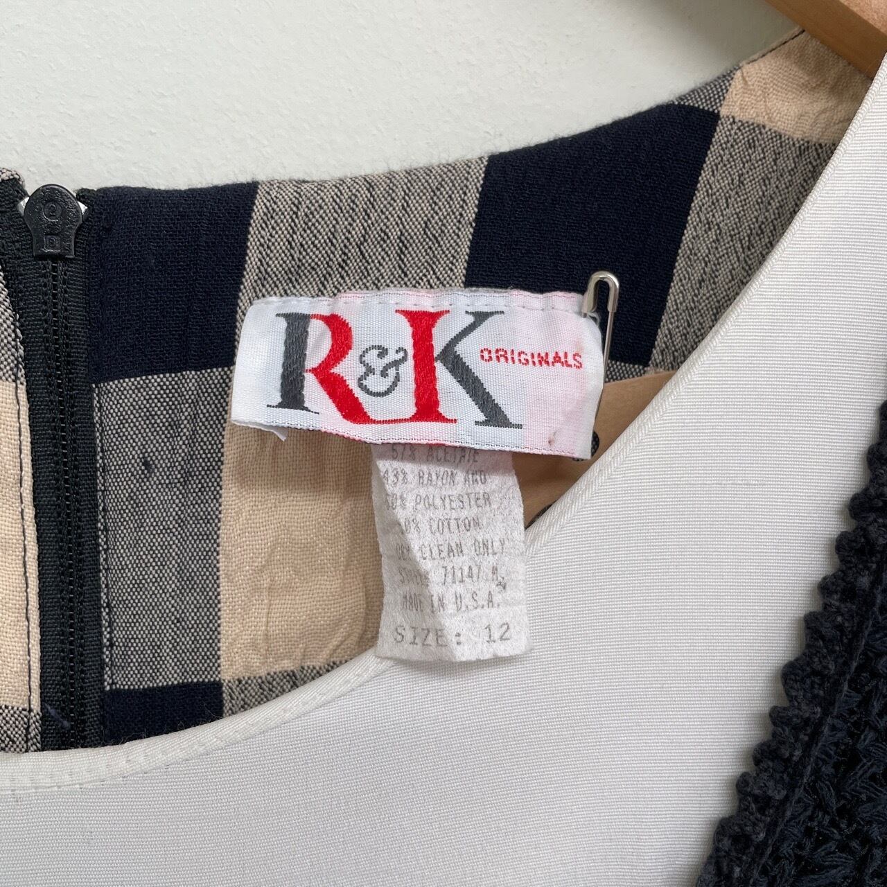70s R&K レイヤード チェック 長袖ワンピース 古着 ヴィンテージ レトロ カントリー ビンテージ 70年代 USA製 レーヨン 25053005