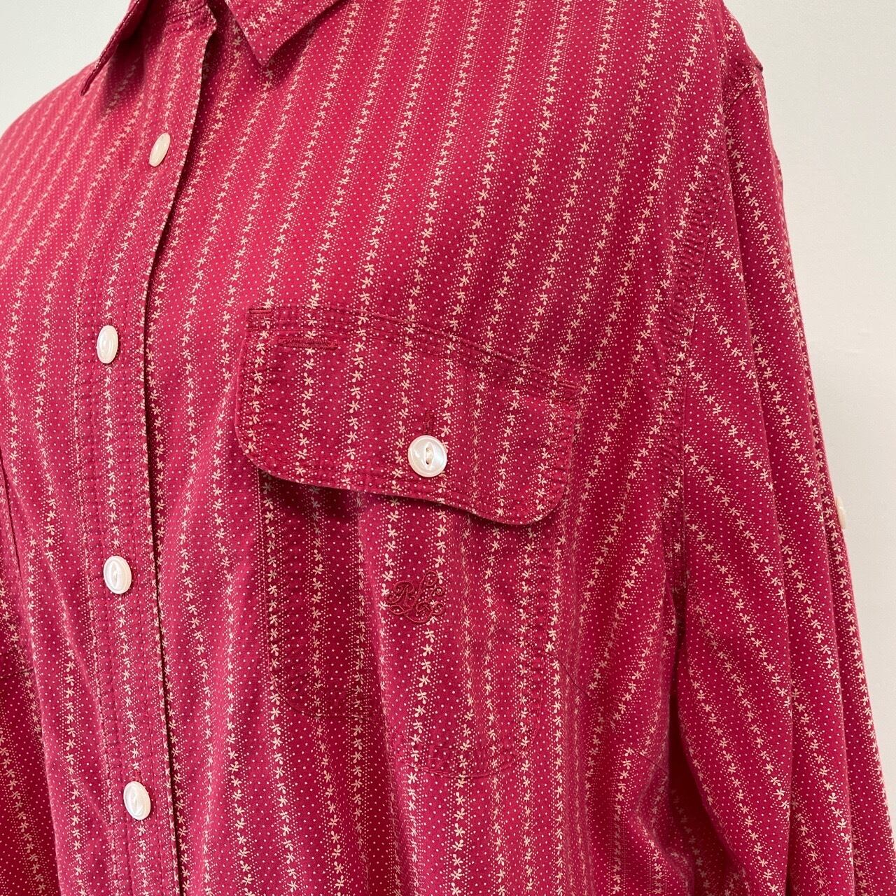 90s LAUREN Ralph Lauren 花柄 ストライプ 長袖シャツ ワークシャツ 古着 ヴィンテージ レディース 赤 レッド 小花柄 刺繍 コットン ビンテージ 90年代 ラルフローレン 25060301