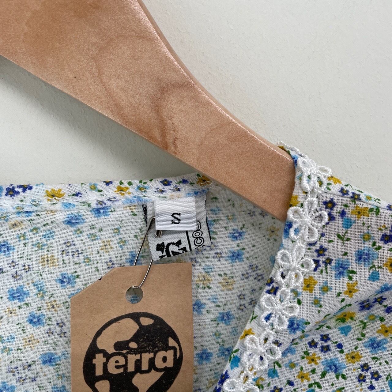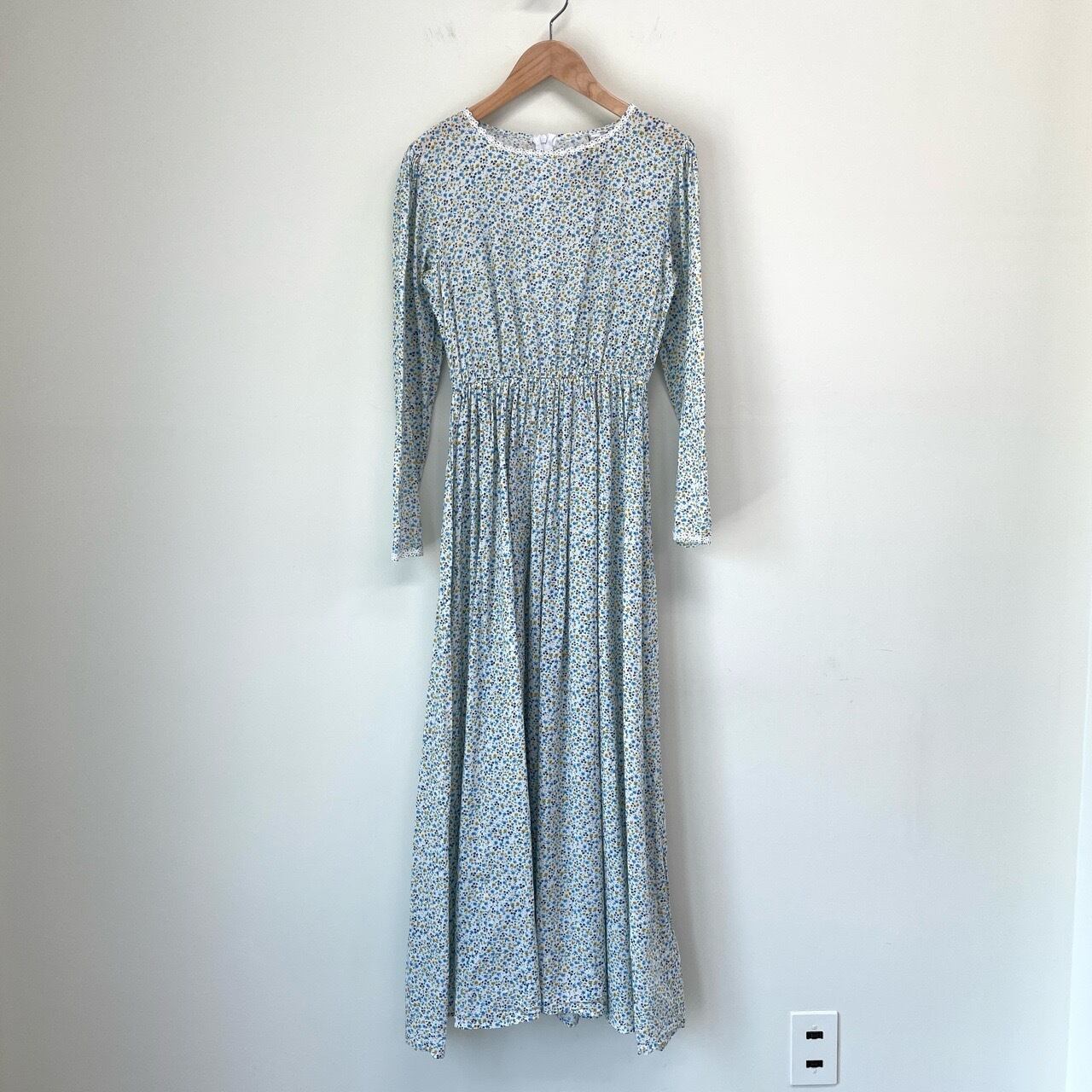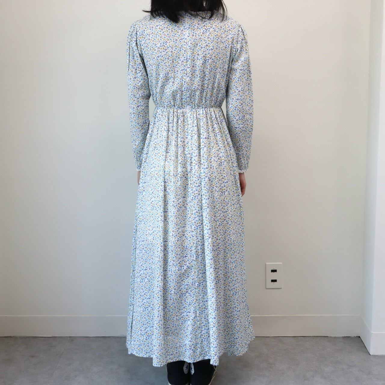 古着 小花柄ワンピース ヴィンテージ 白 ホワイト レトロ 長袖 薄手 レース付き ビンテージ 25061602