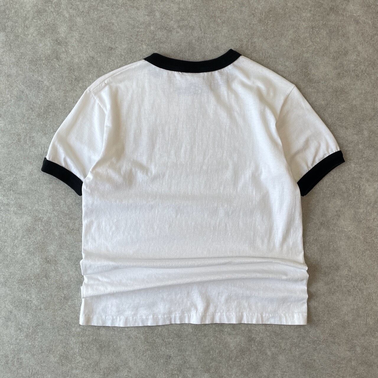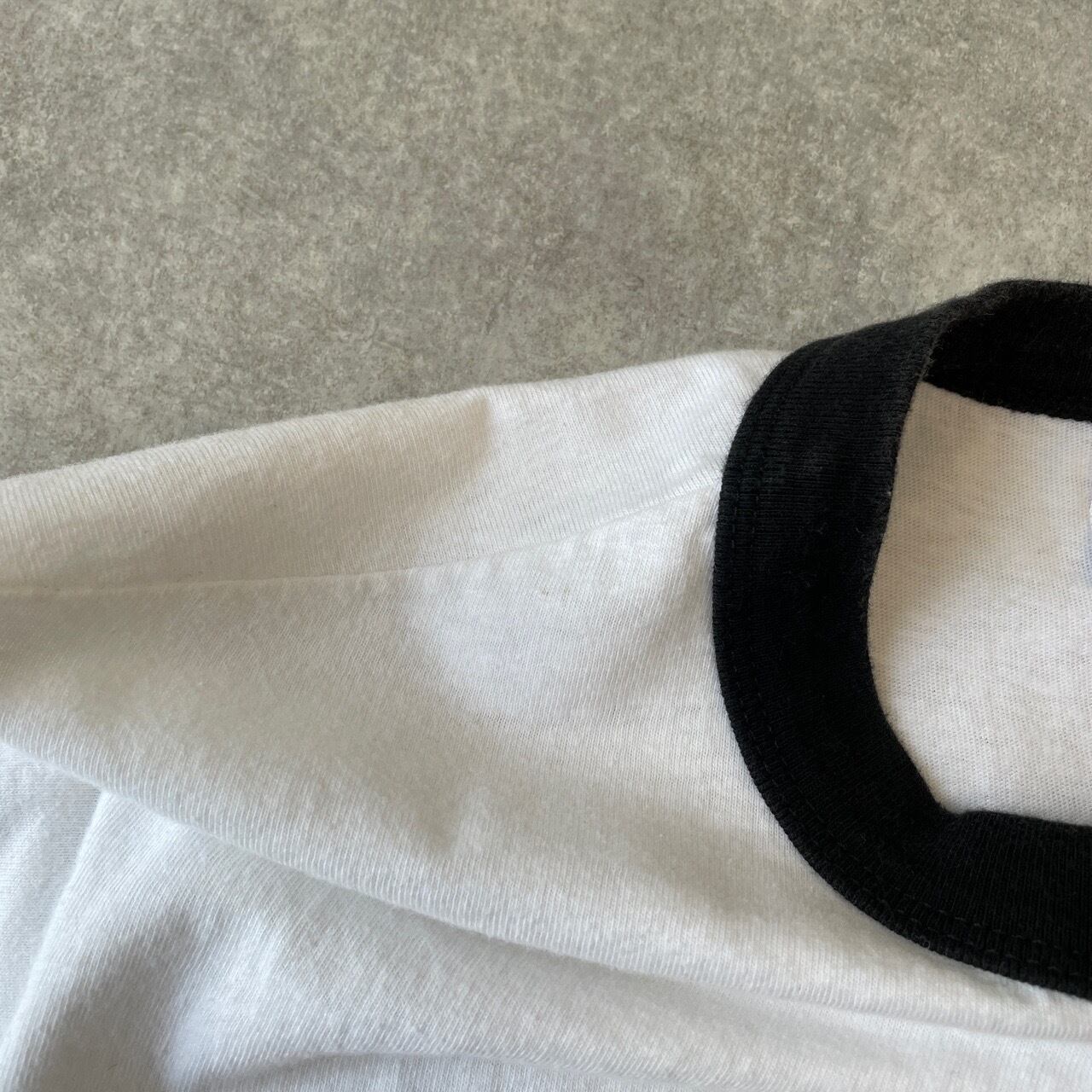 80s USA製 IOP 企業ロゴ リンガーTシャツ ヴィンテージ 古着 ワンポイント 白 ホワイト 黒 ブラック シングルステッチ ビンテージ 80年代 25071801
