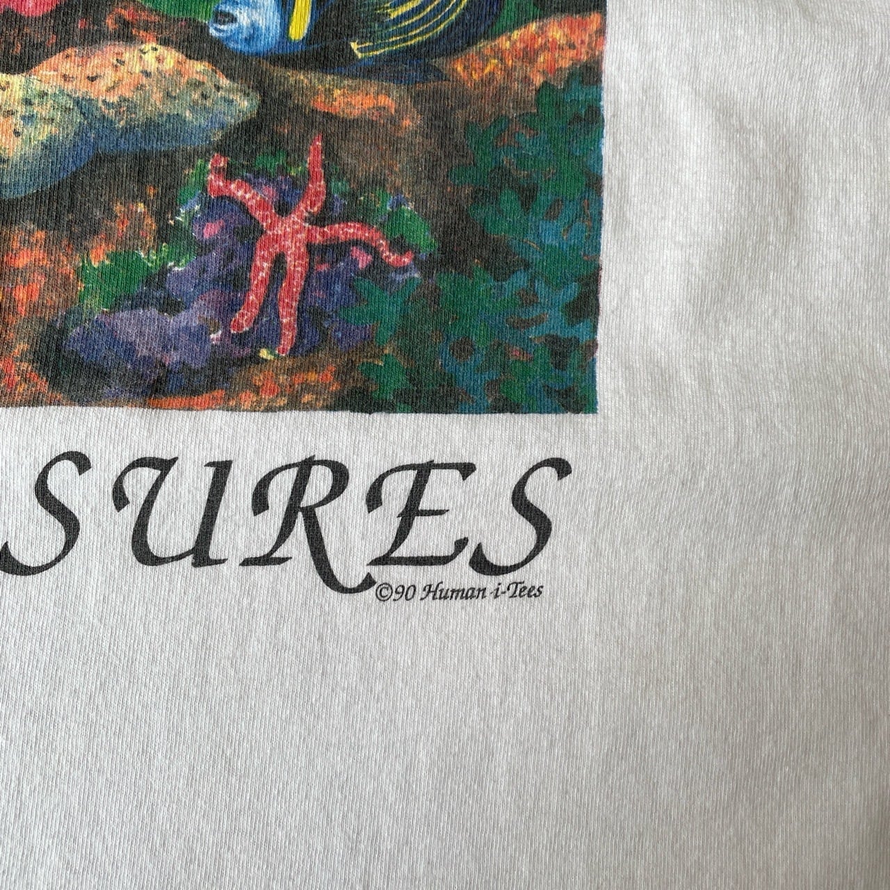 90s Human-i-Tees 魚 アートTシャツ ヴィンテージ 古着 熱帯魚 海 珊瑚 白 ホワイト 動物 アニマル コットン シングルステッチ 90年代 ビンテージ 25071905