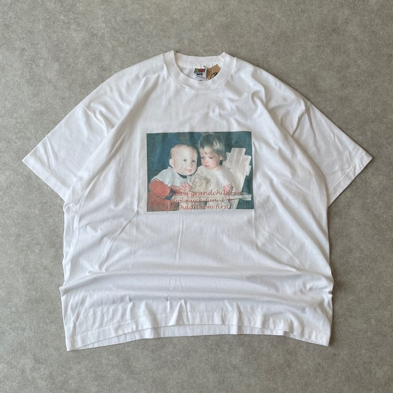 90s USA製 誰やねんTシャツ 赤ちゃん ヴィンテージ 古着 フォト 写真 ベビー 白 ホワイト 90年代 ビンテージ 2XL シングルステッチ 25071910