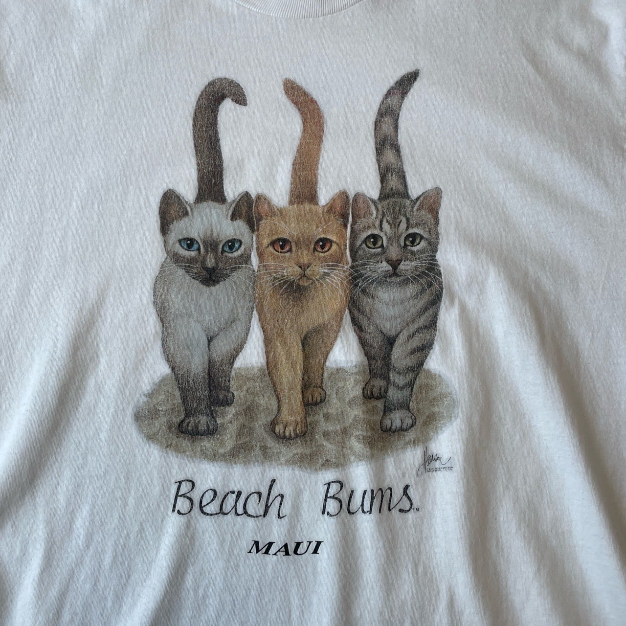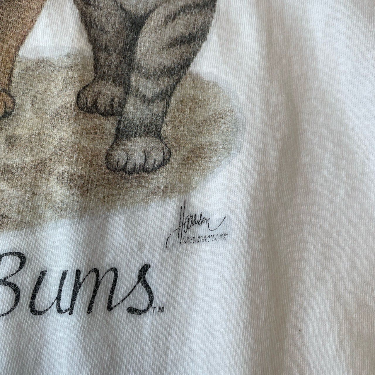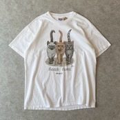 90s Bob Harrison 猫 アニマルTシャツ ヴィンテージ 古着 ボブハリソン Beach Bums 動物 ネコ ねこ キャット あのちゃん ビンテージ 90年代 白 ホワイト シングルステッチ L 25080104