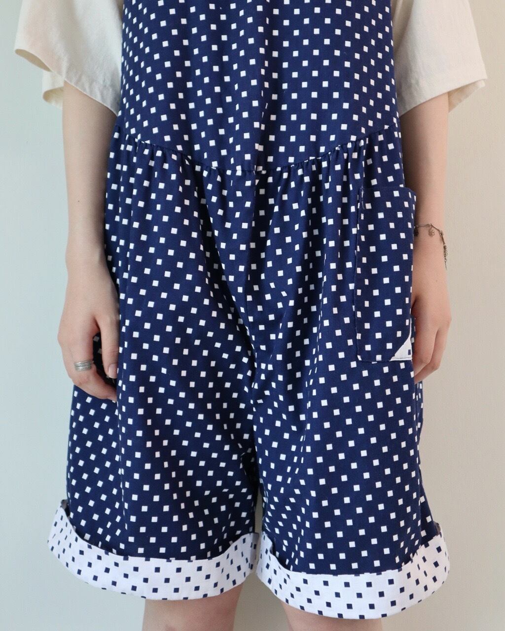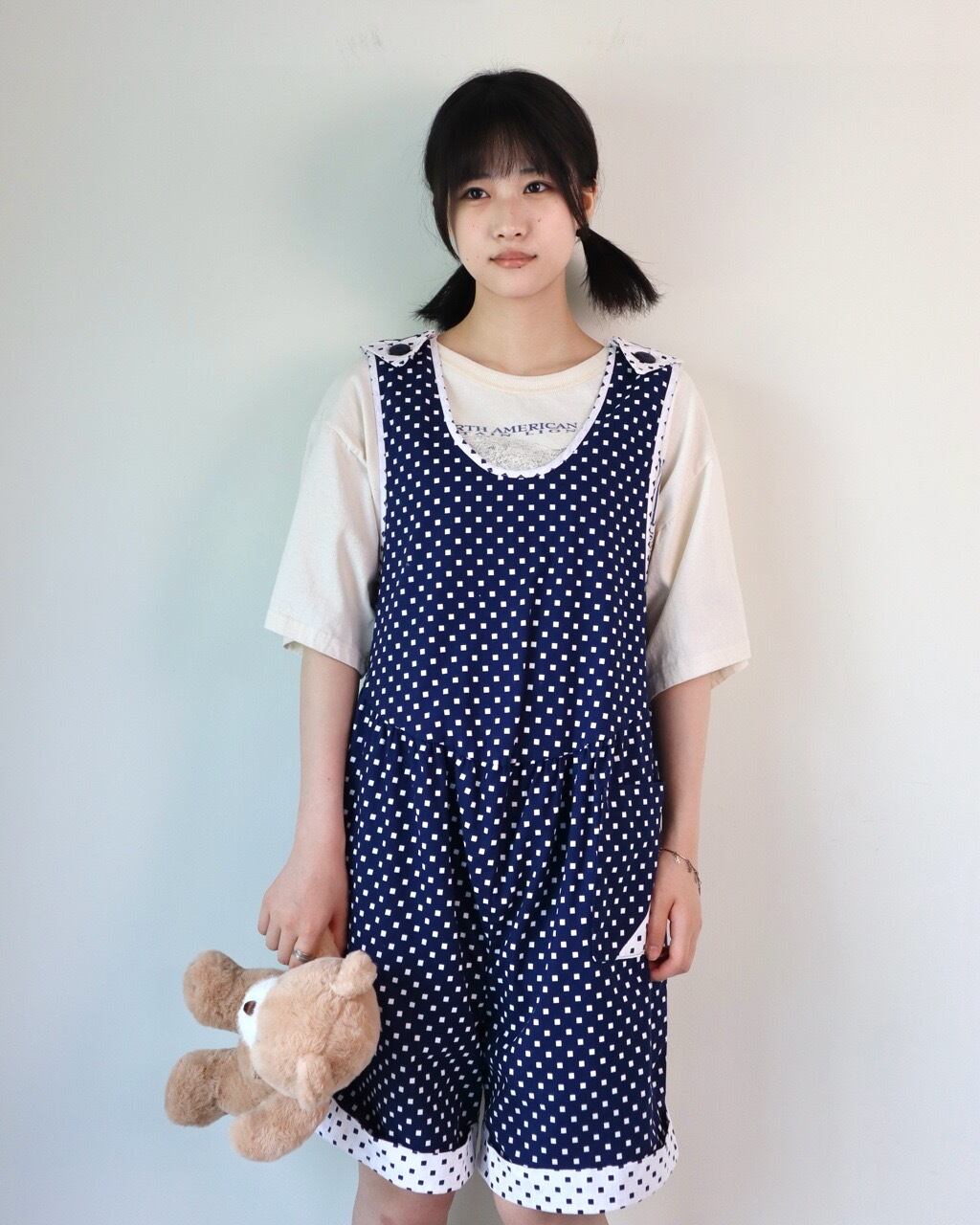 90s USA製 RANDI 総柄サロペット レトロ ヴィンテージ 古着 レディース 紺 ネイビー 90年代 ビンテージ コットン ドット柄 25080210