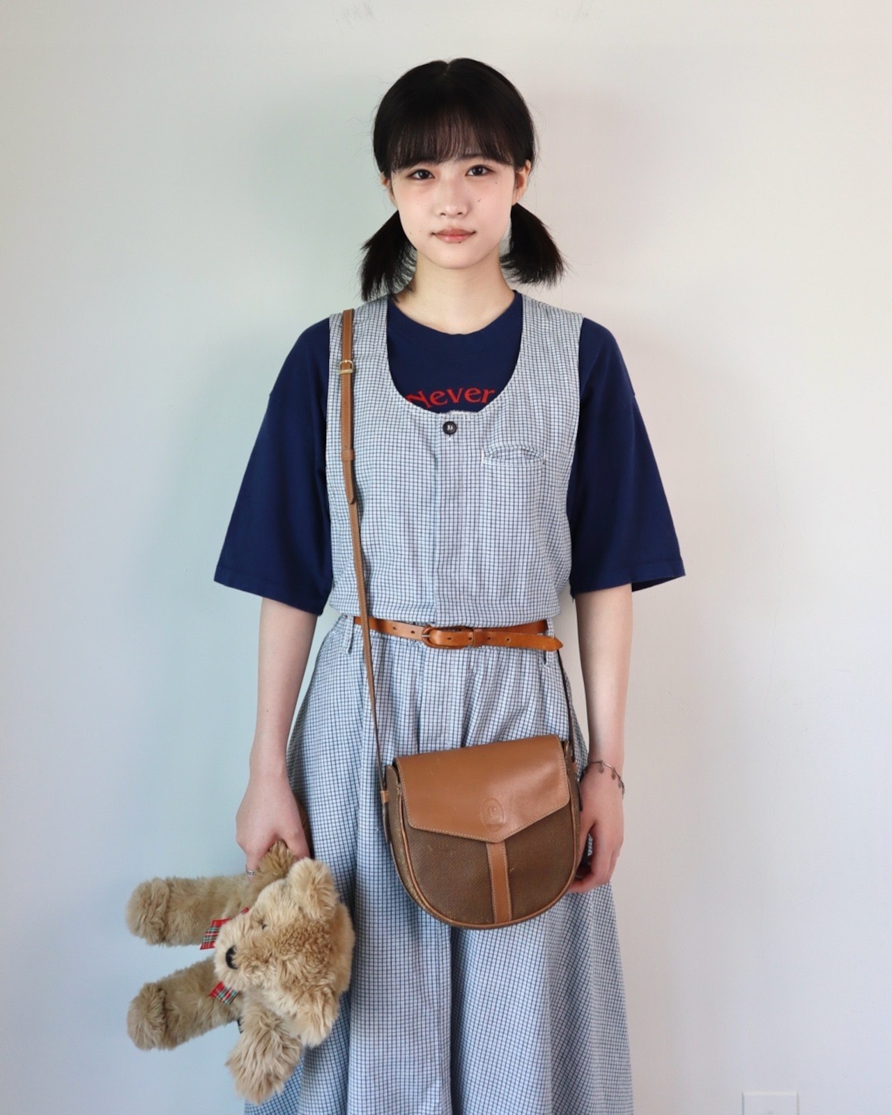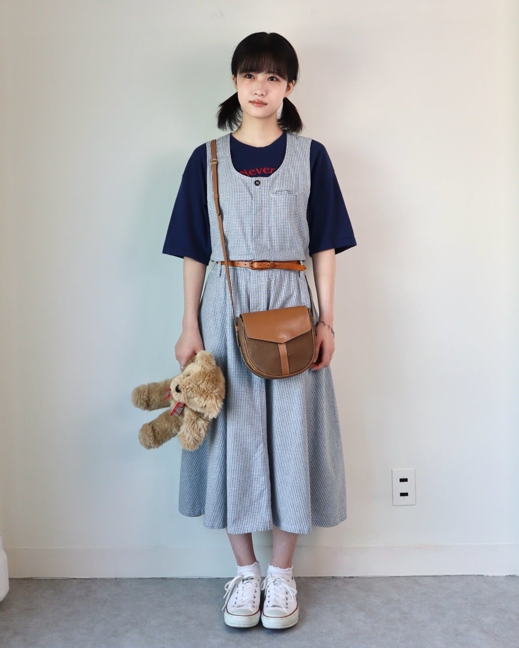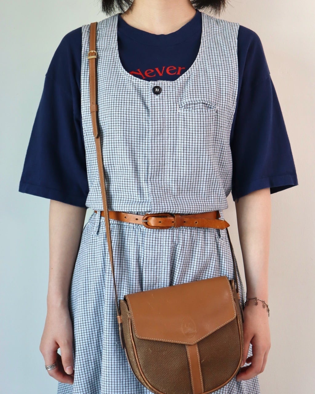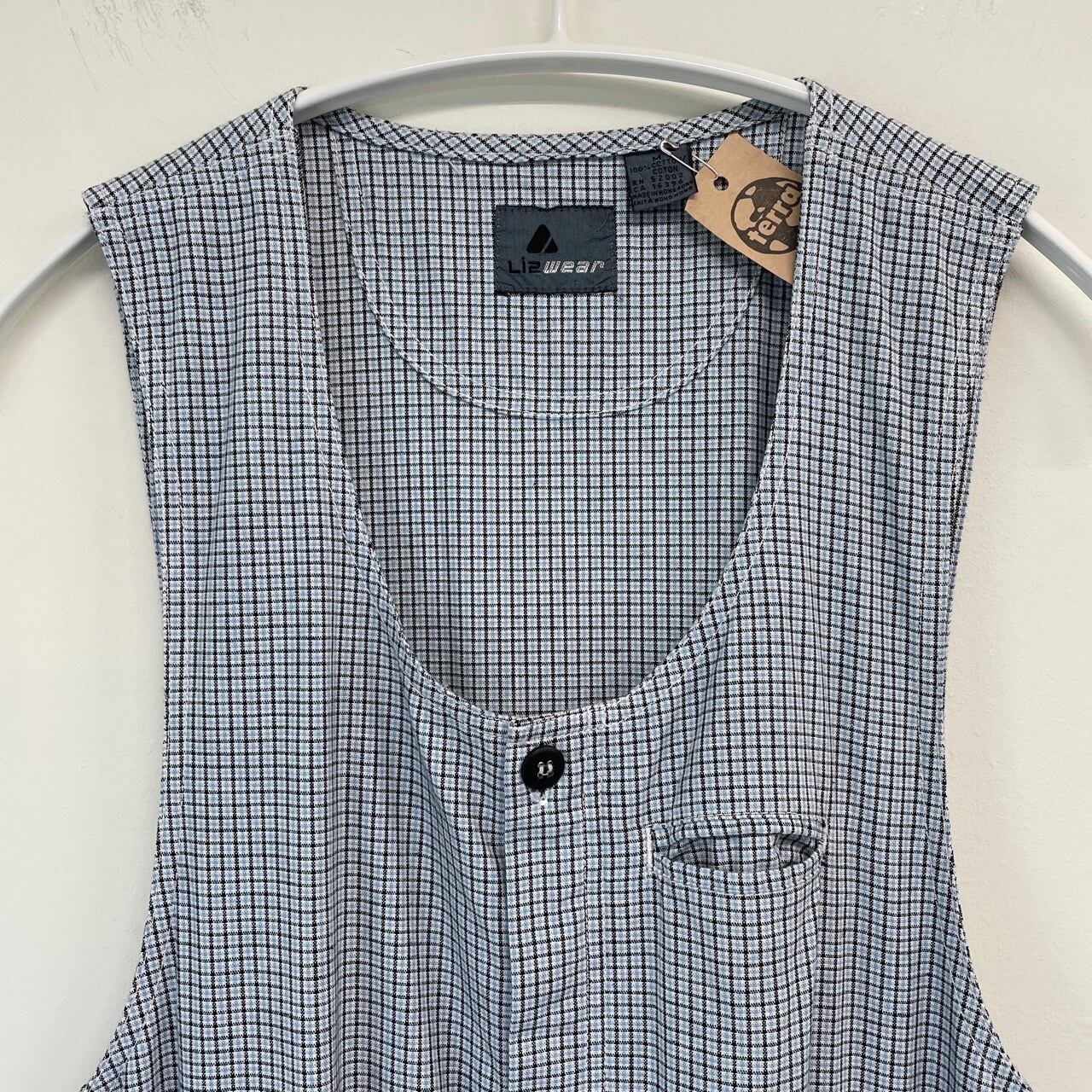 90s Liz wear チェック柄 ジャンパースカート ヴィンテージ 古着 レトロ ジャンスカ ノースリーブ ワンピース コットン 水色 レディース 90年代 ビンテージ 25080211