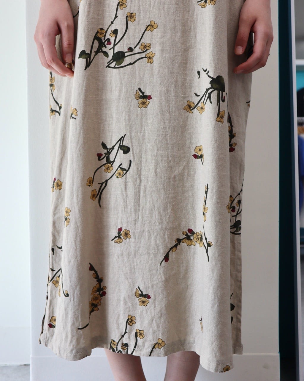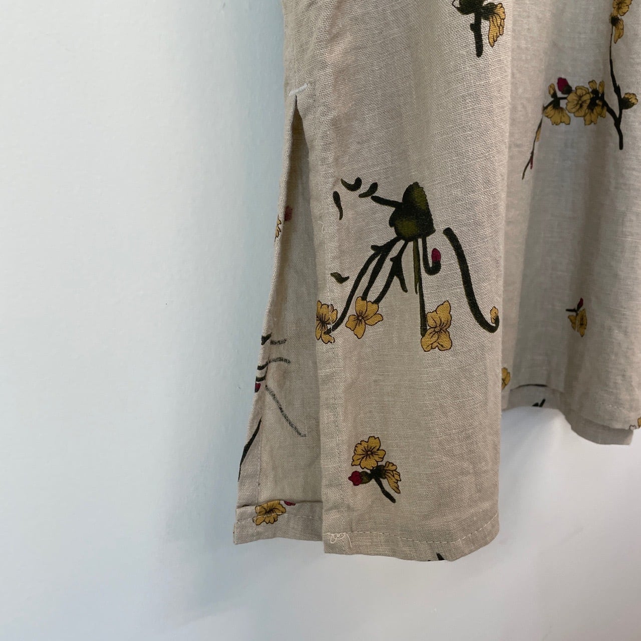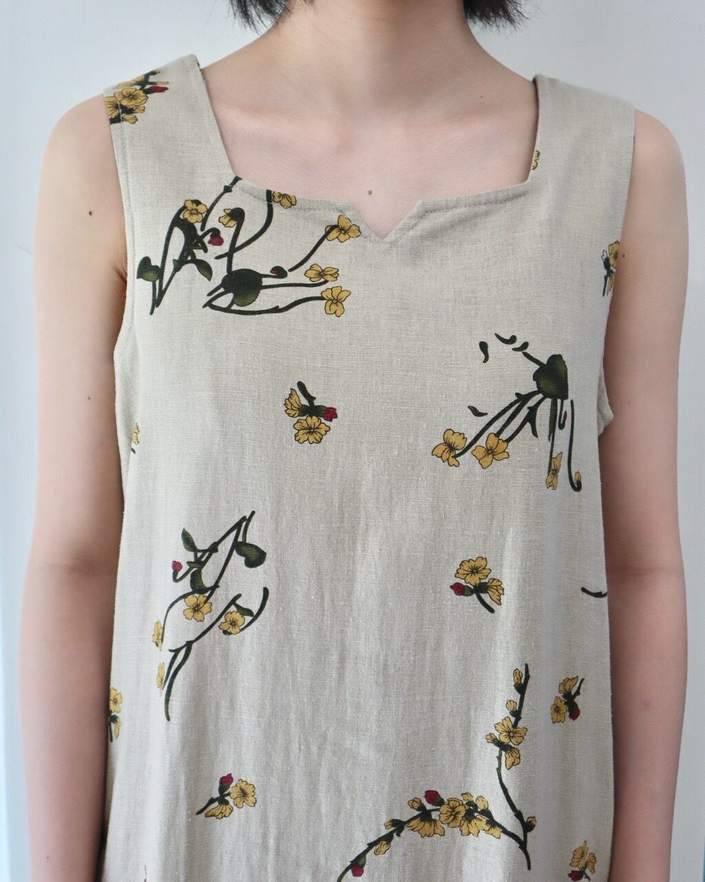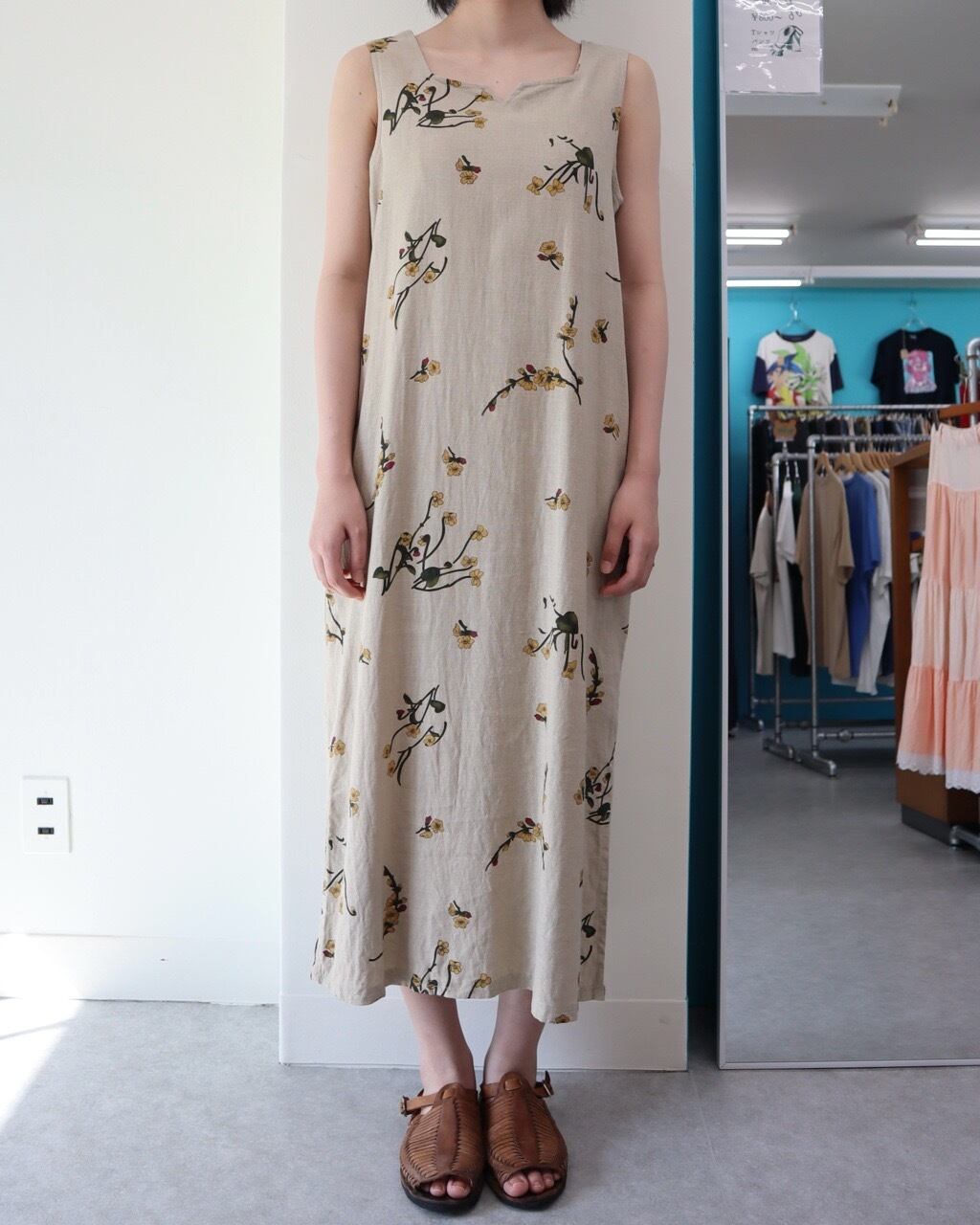 90s 花柄 リネン レーヨン ノースリーブ ワンピース ヴィンテージ 古着 レトロ ベージュ レディース 90年代 ビンテージ 25080212