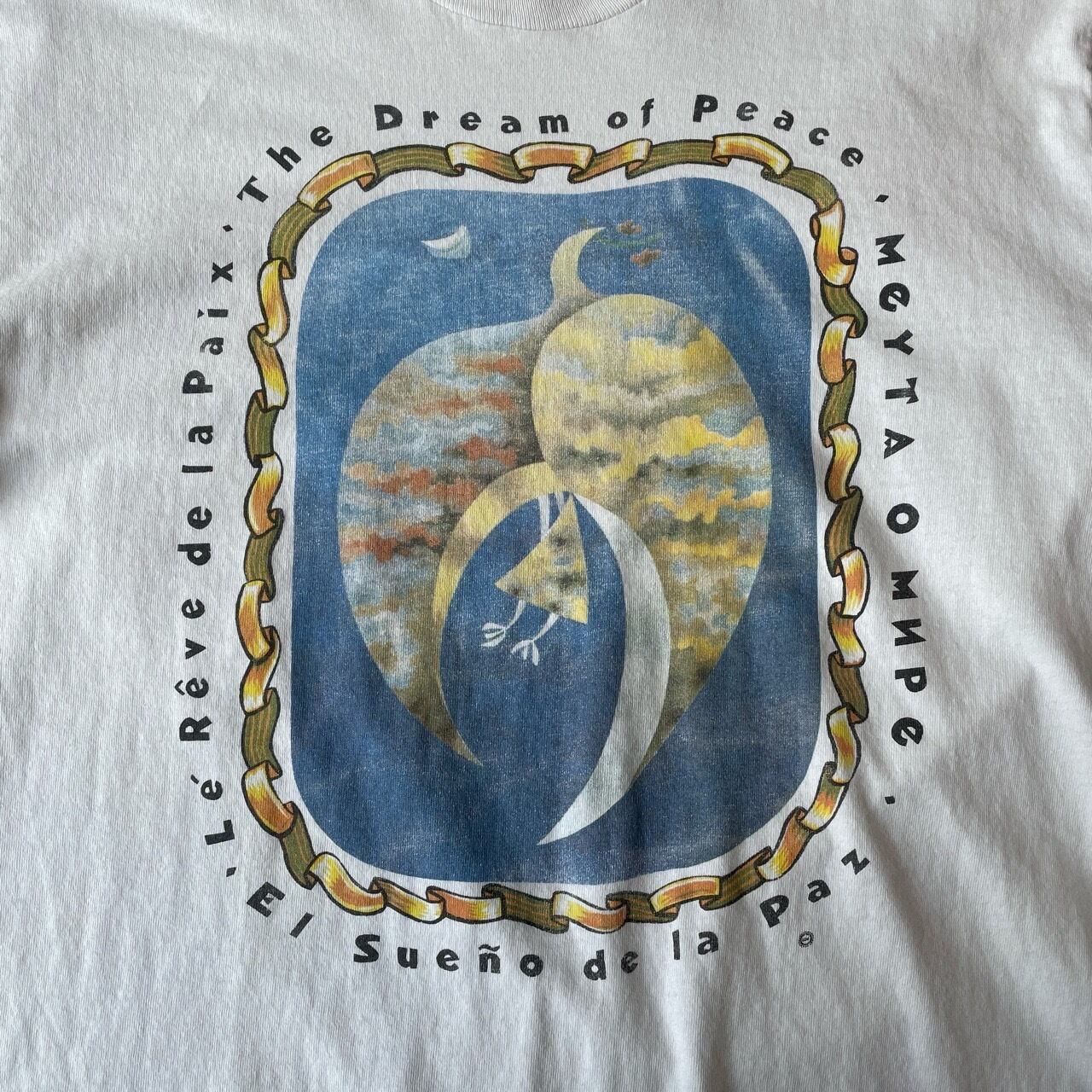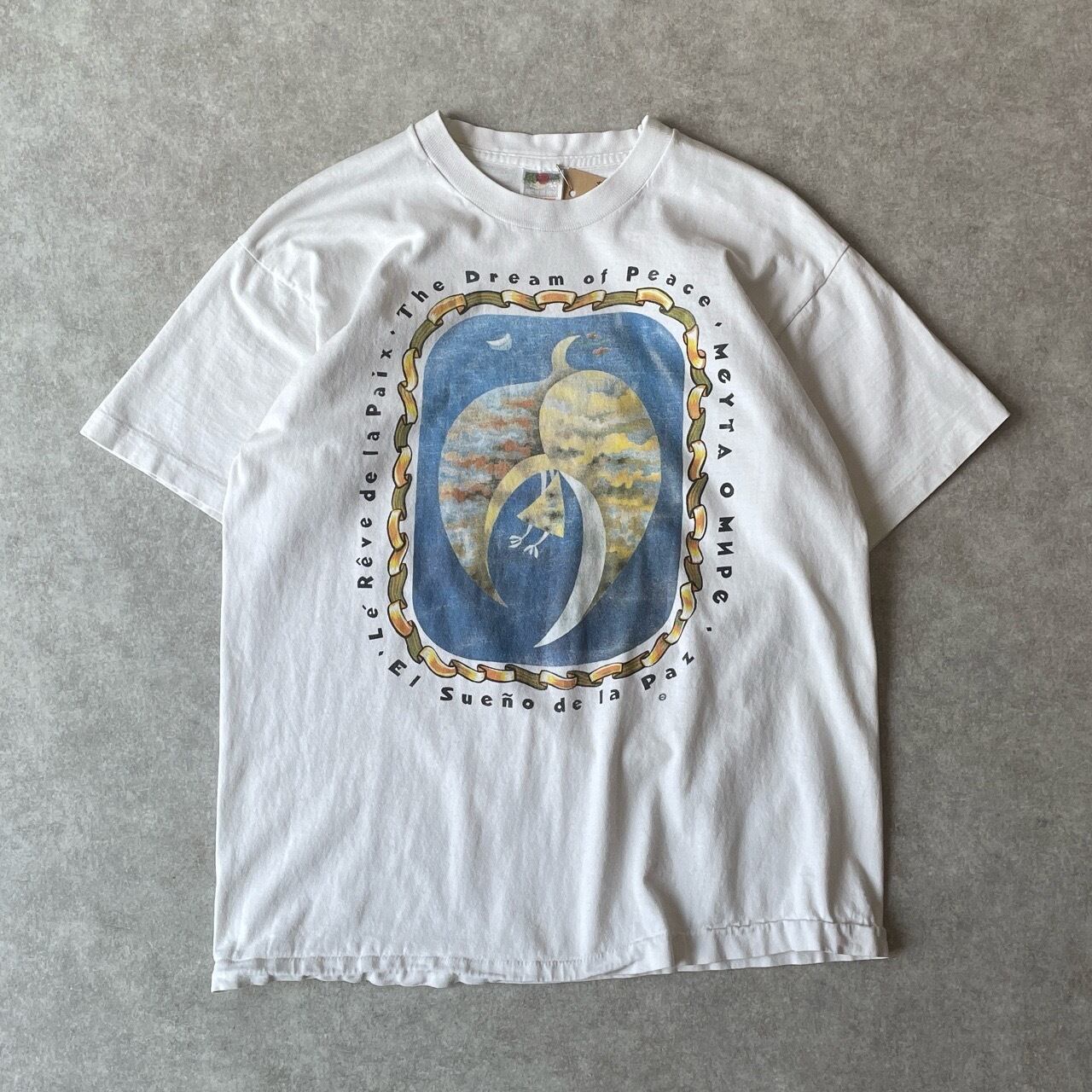 90s USA製 The Dream of Peace アートTシャツ ヴィンテージ 古着 シングルステッチ 白 ホワイト シュールレアリスム 90年代 ビンテージ コットン L 25080306