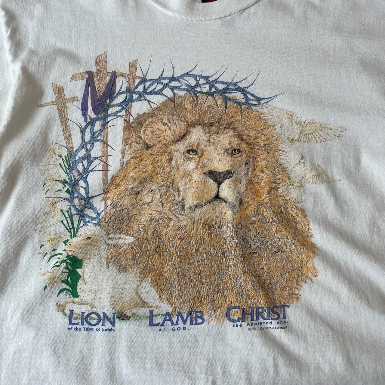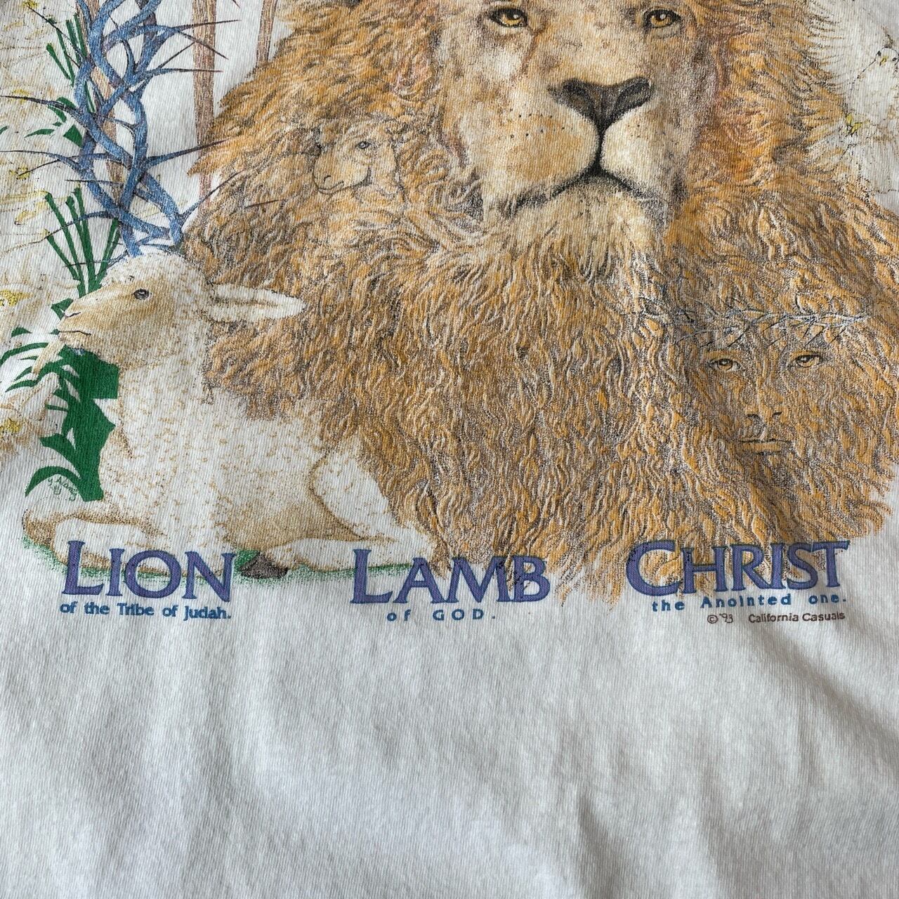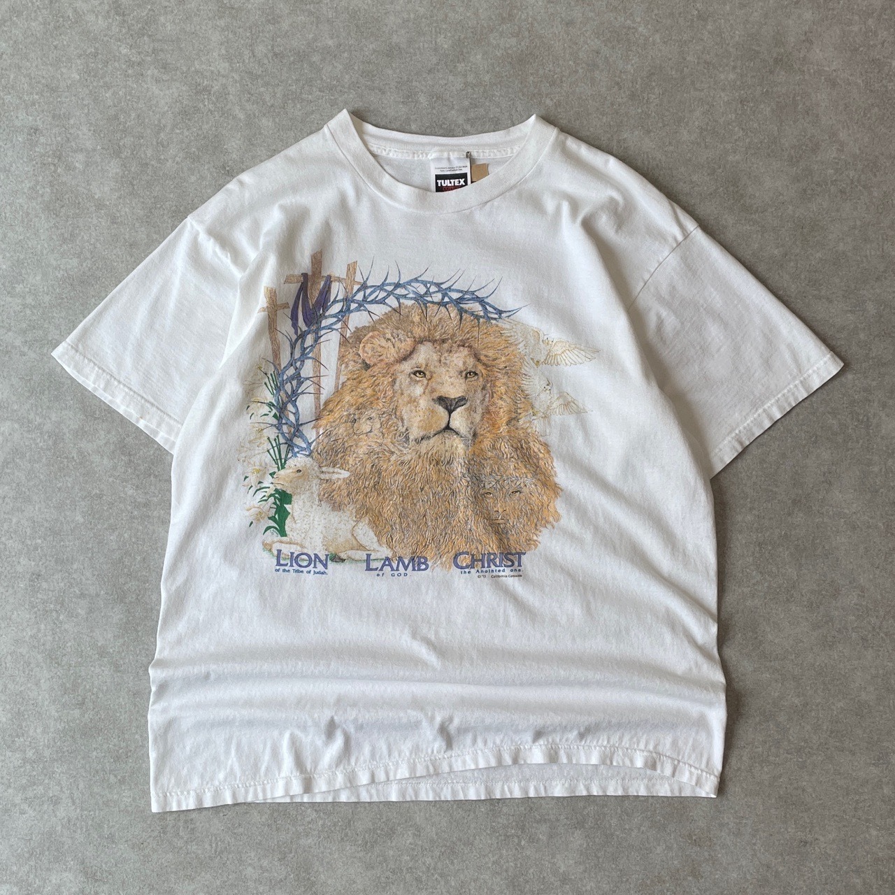 90s ライオン 羊 キリスト Tシャツ ヴィンテージ 古着 動物 ジーザス アニマルTシャツ ひつじ 白 ホワイト コットン 90年代 ビンテージ XL 25080407