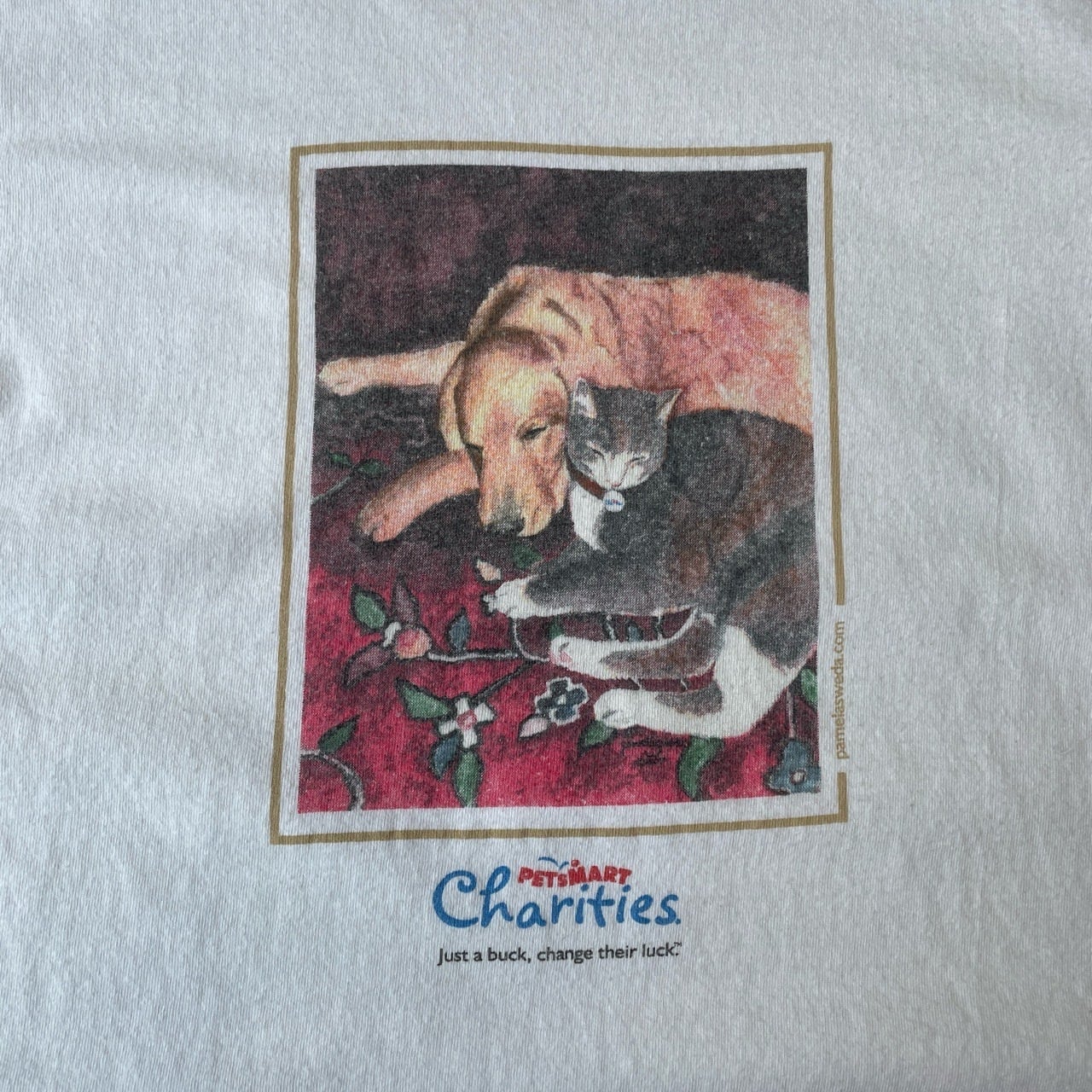 00s 犬 猫 アートTシャツ ヴィンテージ 古着 アニマルTシャツ 動物 ネコ PETSMART 白 ホワイト コットン Y2K 00年代 2000s 2000年代 ビンテージ L 25080412