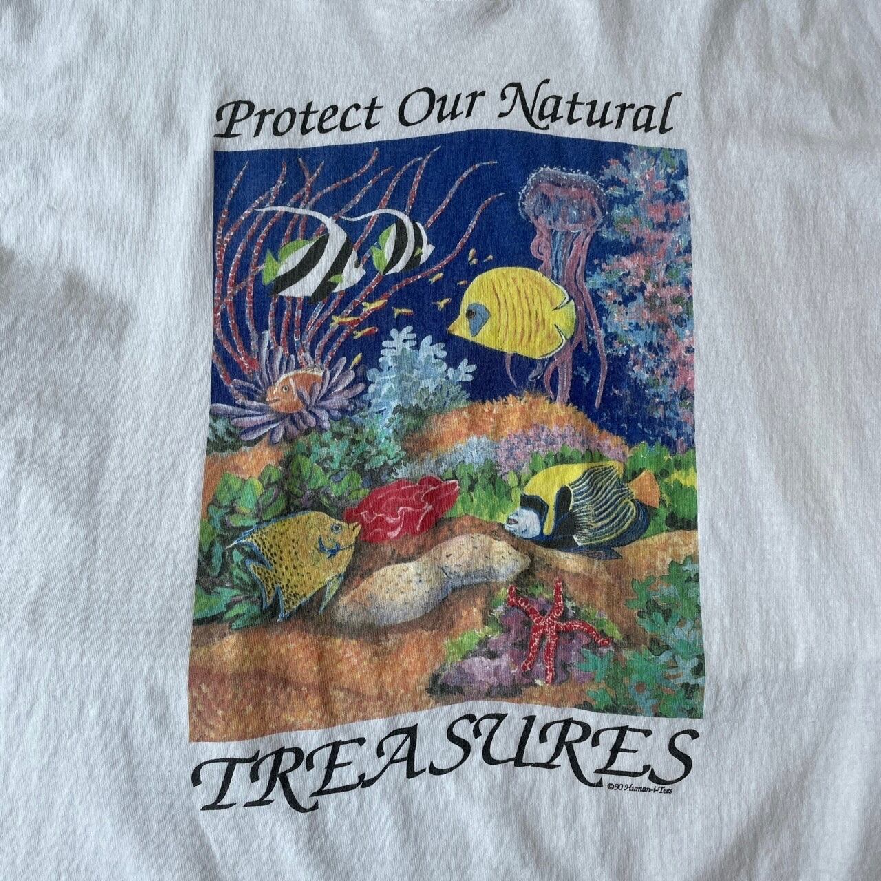 90s USA製 Human-i-Tees 魚 アートTシャツ ヴィンテージ 古着 熱帯魚 海 珊瑚 白 ホワイト 動物 アニマル コットン シングルステッチ 90年代 ビンテージ 2XL 25080417