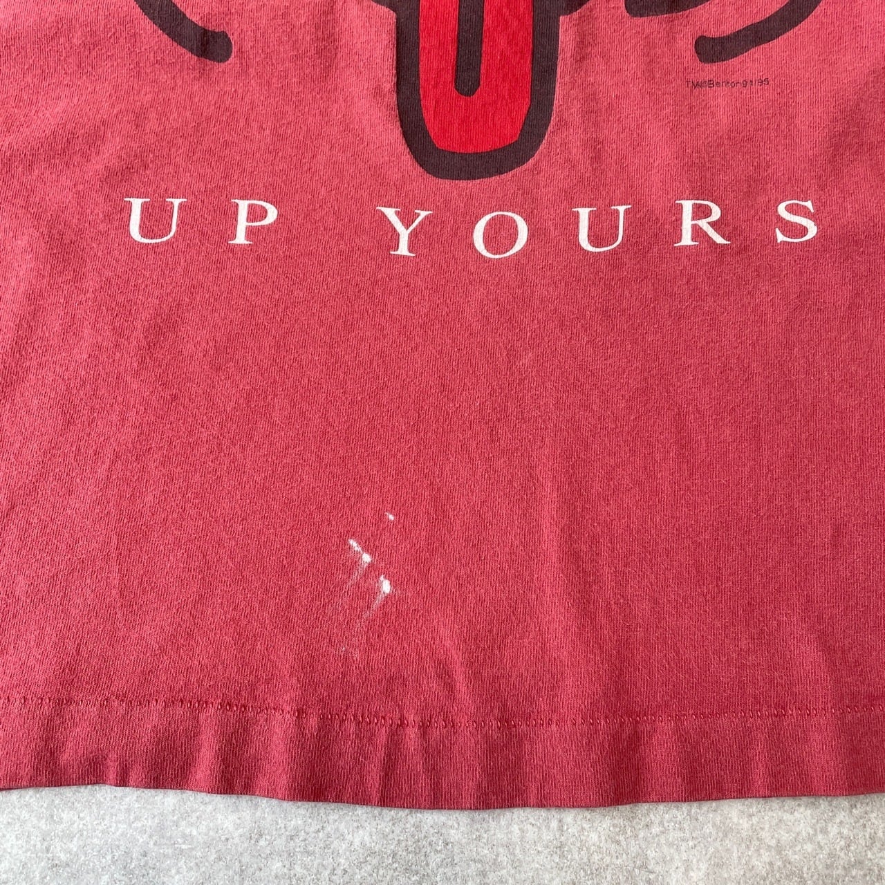 90s USA製 UP YOURS アートTシャツ ヴィンテージ 古着 あっかんべー あかんべえ 赤 レッド シングルステッチ コットン 90年代 ビンテージ L 25080501