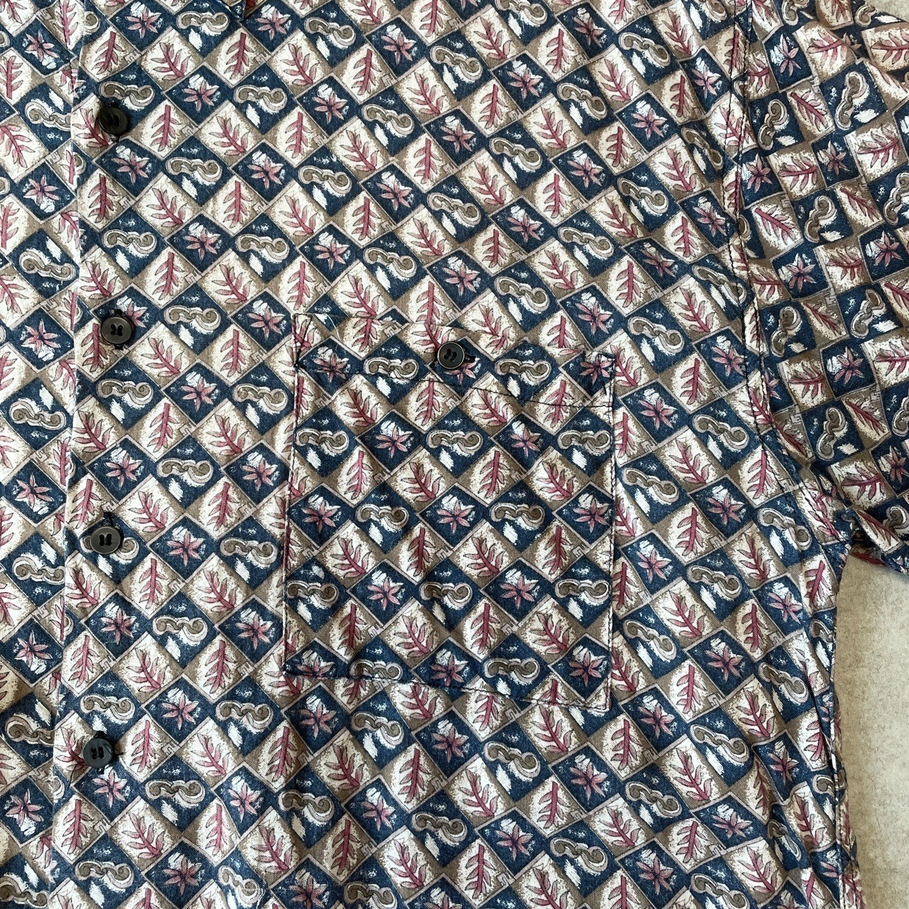 90s PRISM 総柄 レーヨン 半袖シャツ ヴィンテージ 古着 ボタニカル ハワイアン アロハ ビンテージ 90年代 L 25080805