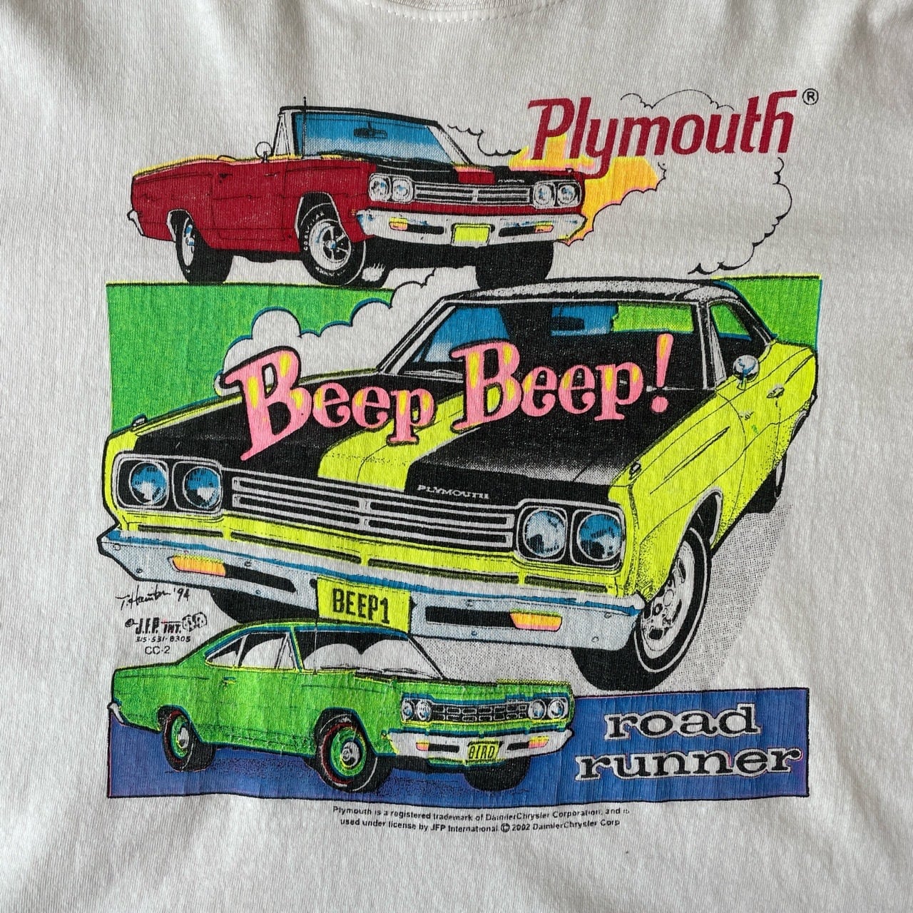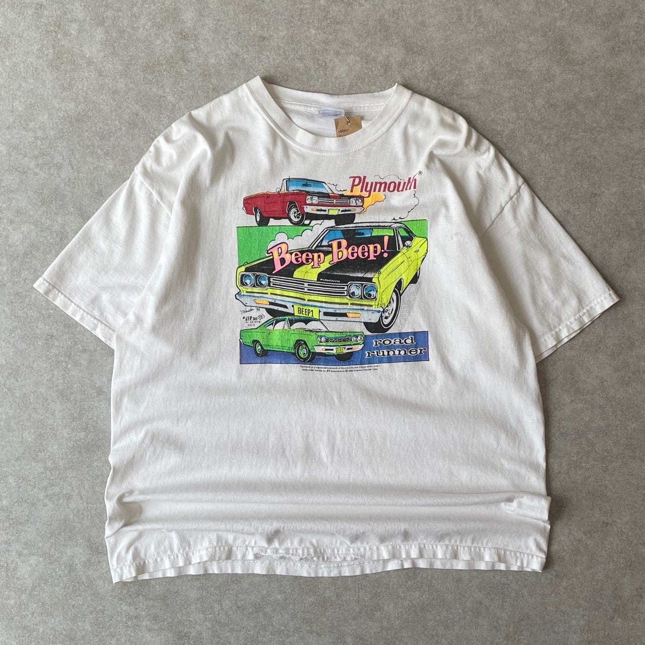 00s Plymouth プリムス ロードランナー 車 Tシャツ ヴィンテージ 古着 オールドカー クラシックカー 白 ホワイト コットン 1994年 90s ビンテージ XL 25080809