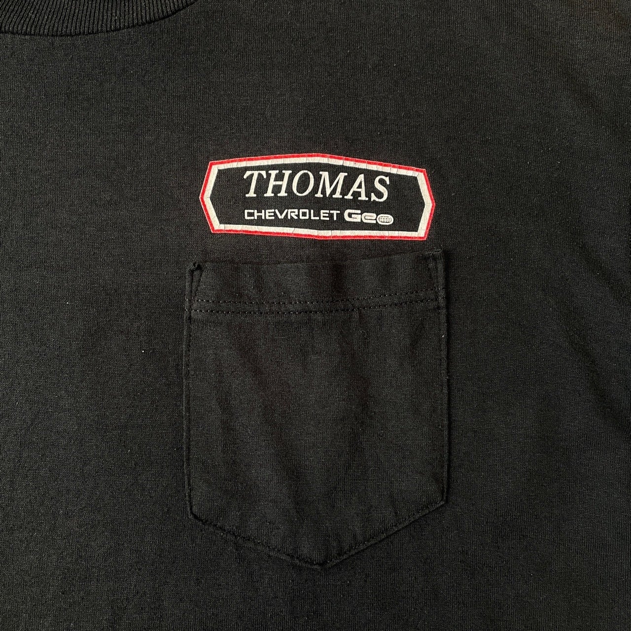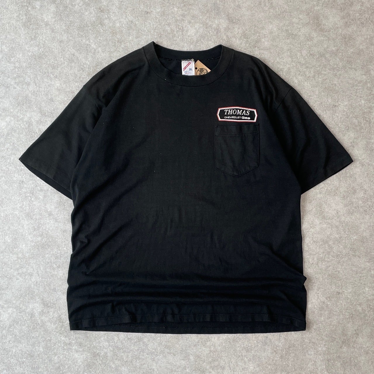 80s 90s USA製 CHEVROLET シボレー ポケットTシャツ ヴィンテージ 古着 企業 黒 ブラック 車 ポケT シングルステッチ 80年代 90年代 ビンテージ XL 25080904