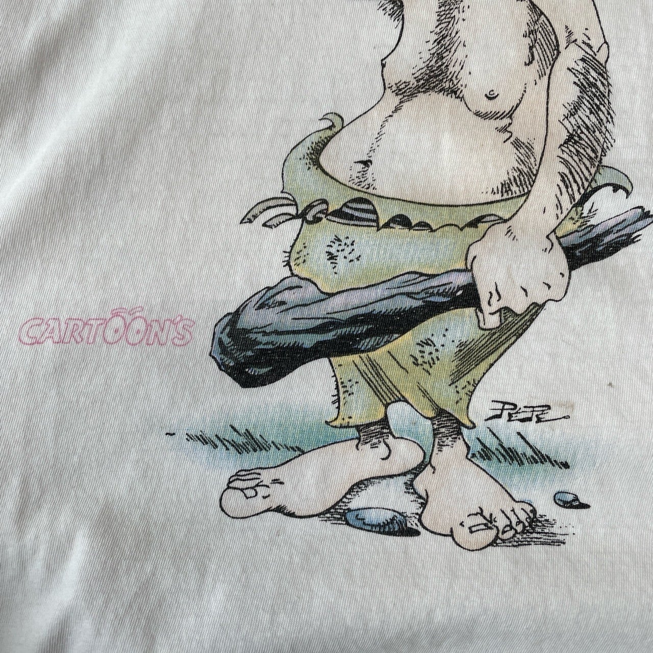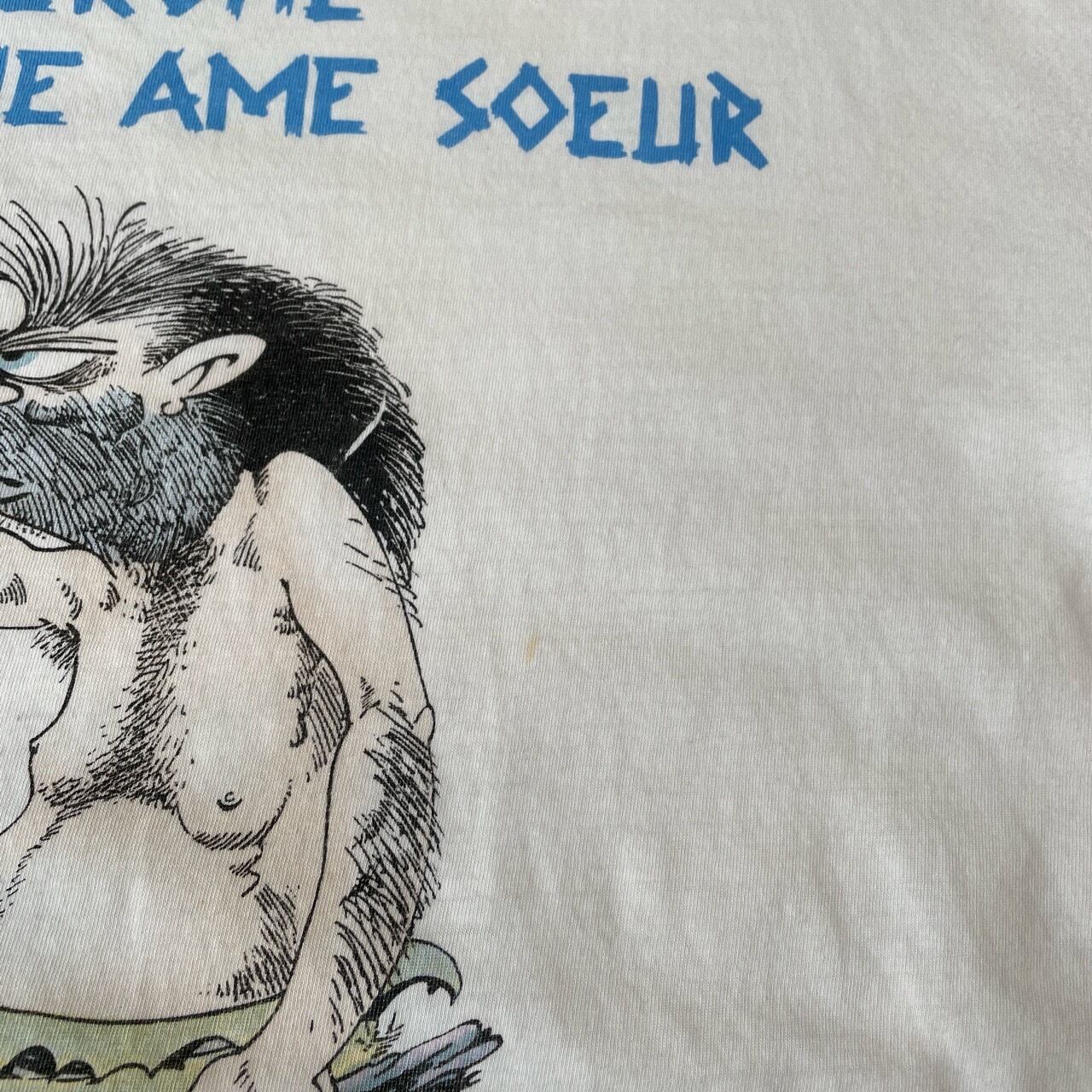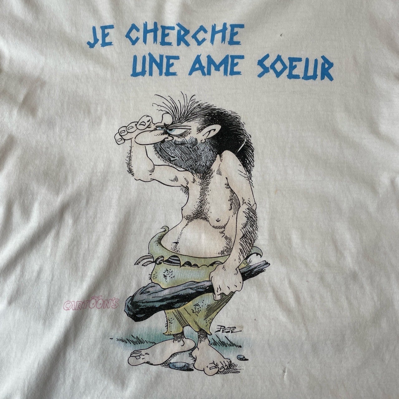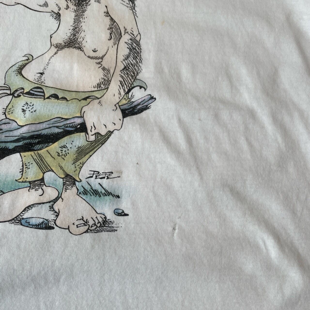 70s 原始人 カートゥーン イラスト Tシャツ ヴィンテージ 古着 フランス ユーロ 白 ホワイト シングルステッチ 70年代 ビンテージ XL 25080910