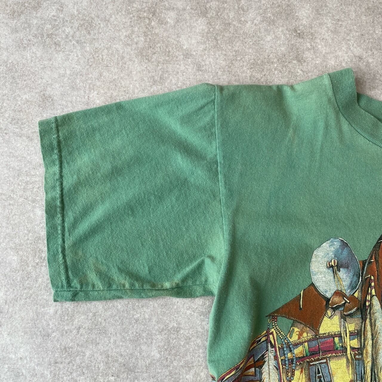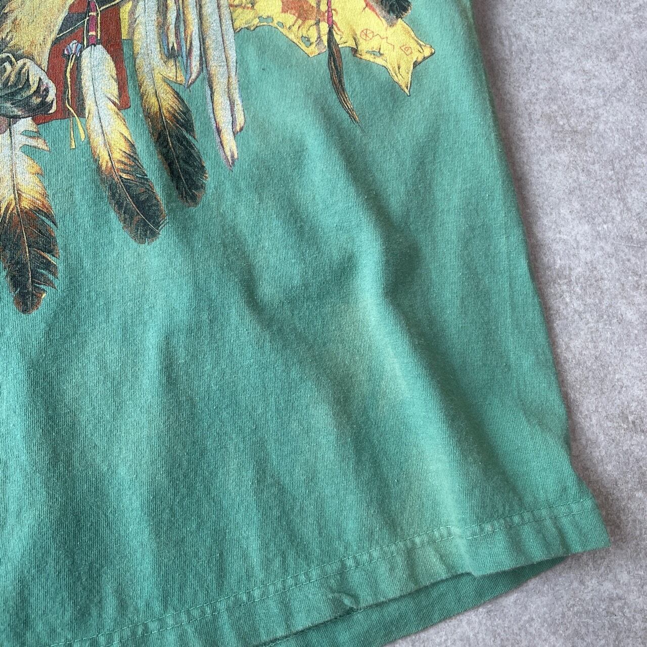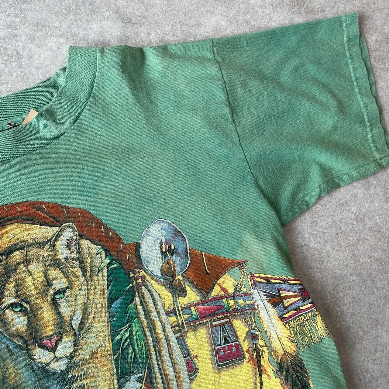 90s USA製 HABITAT マウンテンライオン アニマルTシャツ ヴィンテージ 古着 動物 インディアン ネイティブ 民族 緑 グリーン 90年代 ビンテージ M 25081102