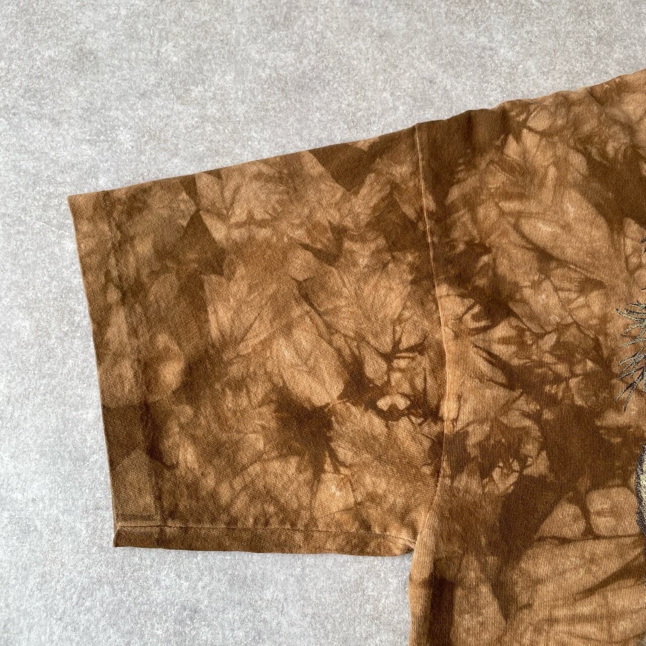 90s USA製 LIQUID BLUE オオカミ 狼 タイダイTシャツ ヴィンテージ 古着 アニマルTシャツ ウルフ 茶 ブラウン シングルステッチ 動物 90年代 ビンテージ L 25081112