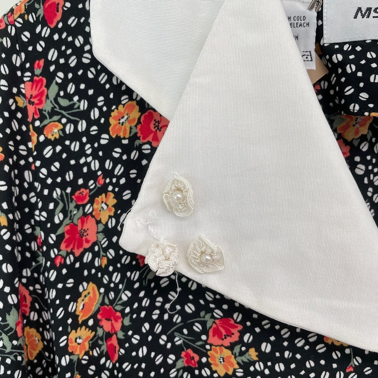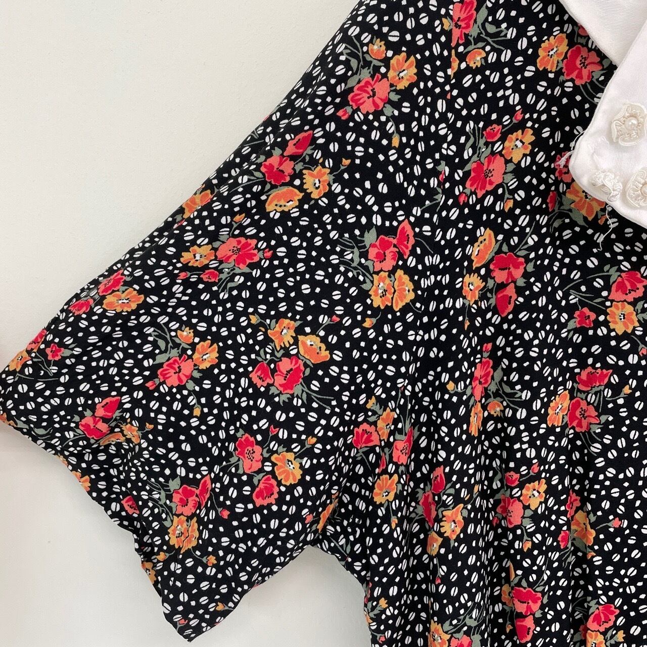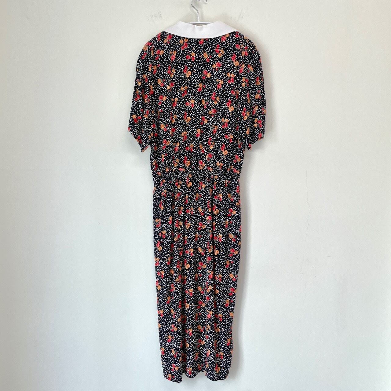 90s MS CHAUS 花柄 レーヨン 半袖 ワンピース ヴィンテージ 古着 レトロ 黒 ブラック 90年代 ビンテージ レディース 25081404