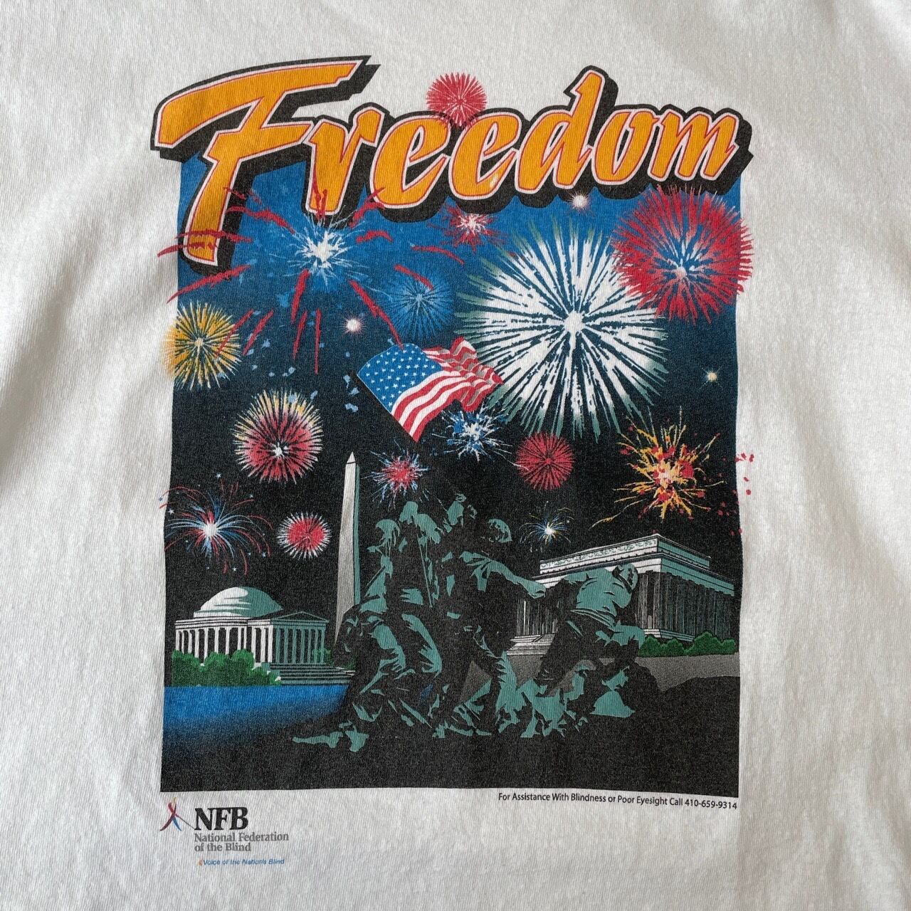 00s Freedom 花火 アートTシャツ ヴィンテージ 古着 硫黄島の星条旗 白 ホワイト Y2K 00年代 2000s 2000年代 ビンテージ 25081604