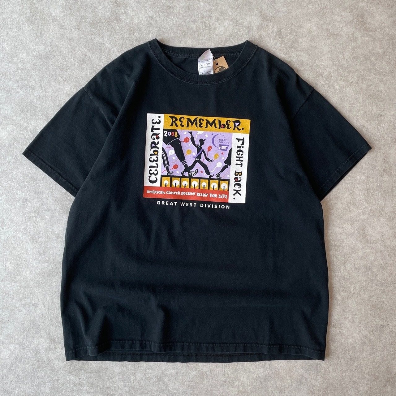 00s マラソン イベント アートTシャツ ヴィンテージ 古着 黒 ブラック チャリティ 2008年 Y2K 00年代 2000s 2000年代 ビンテージ L 25081712
