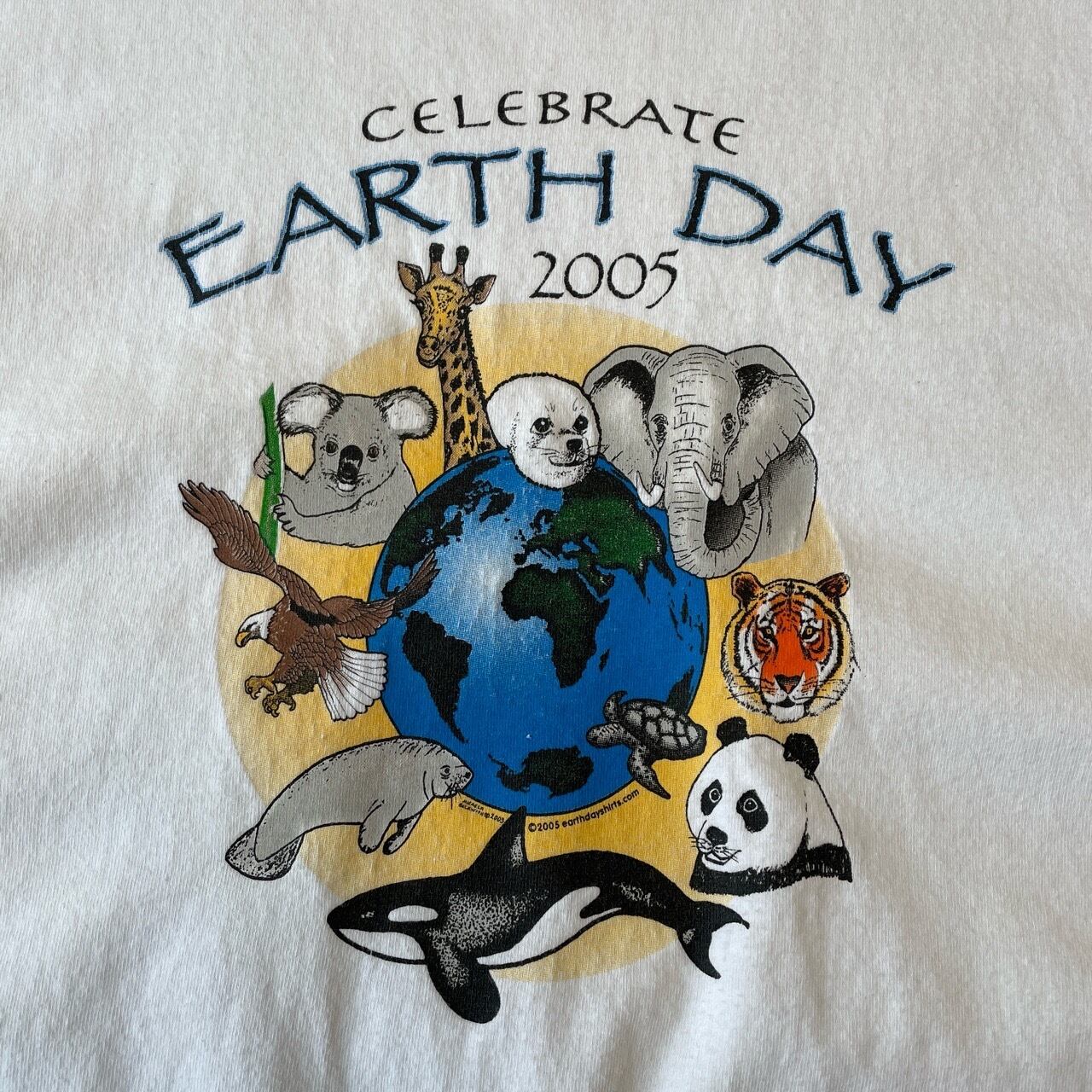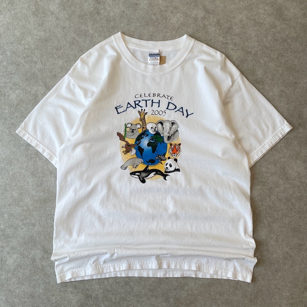 00s EARTH DAY アニマルTシャツ ヴィンテージ 古着 動物 地球 白 ホワイト 2005年 Y2K 00年代 2000s 2000年代 ビンテージ キリン アザラシ ゾウ パンダ シャチ コアラ L 25090102