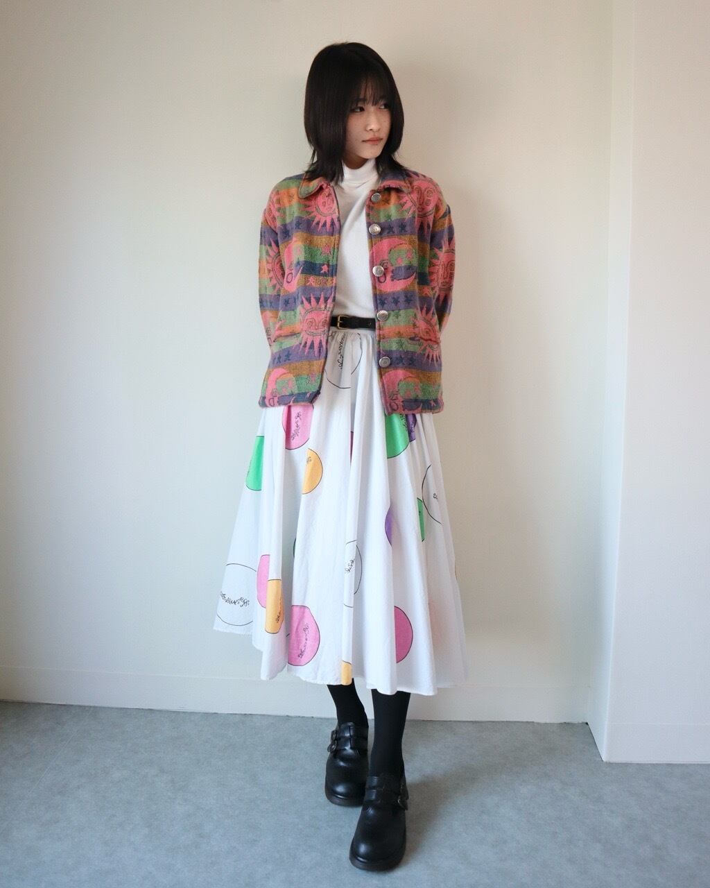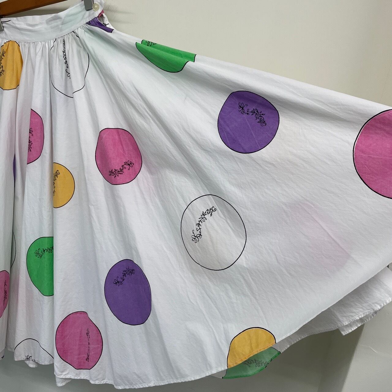 50s 総柄 サーキュラースカート コットン サークル型 ヴィンテージ 古着 カラフル ドット柄 レディース 白 ホワイト ビンテージ 50年代 ロカビリー W23 25092001