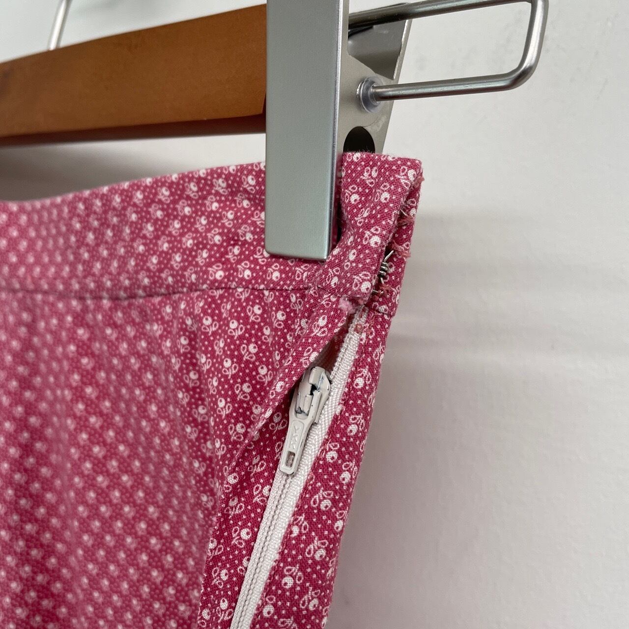 70s レトロ 総柄 レース付き コットンスカート ピンク ヴィンテージ 古着 小花柄 植物柄 ボタニカル柄 果物柄 フリル 70年代 ビンテージ レディース 25092004