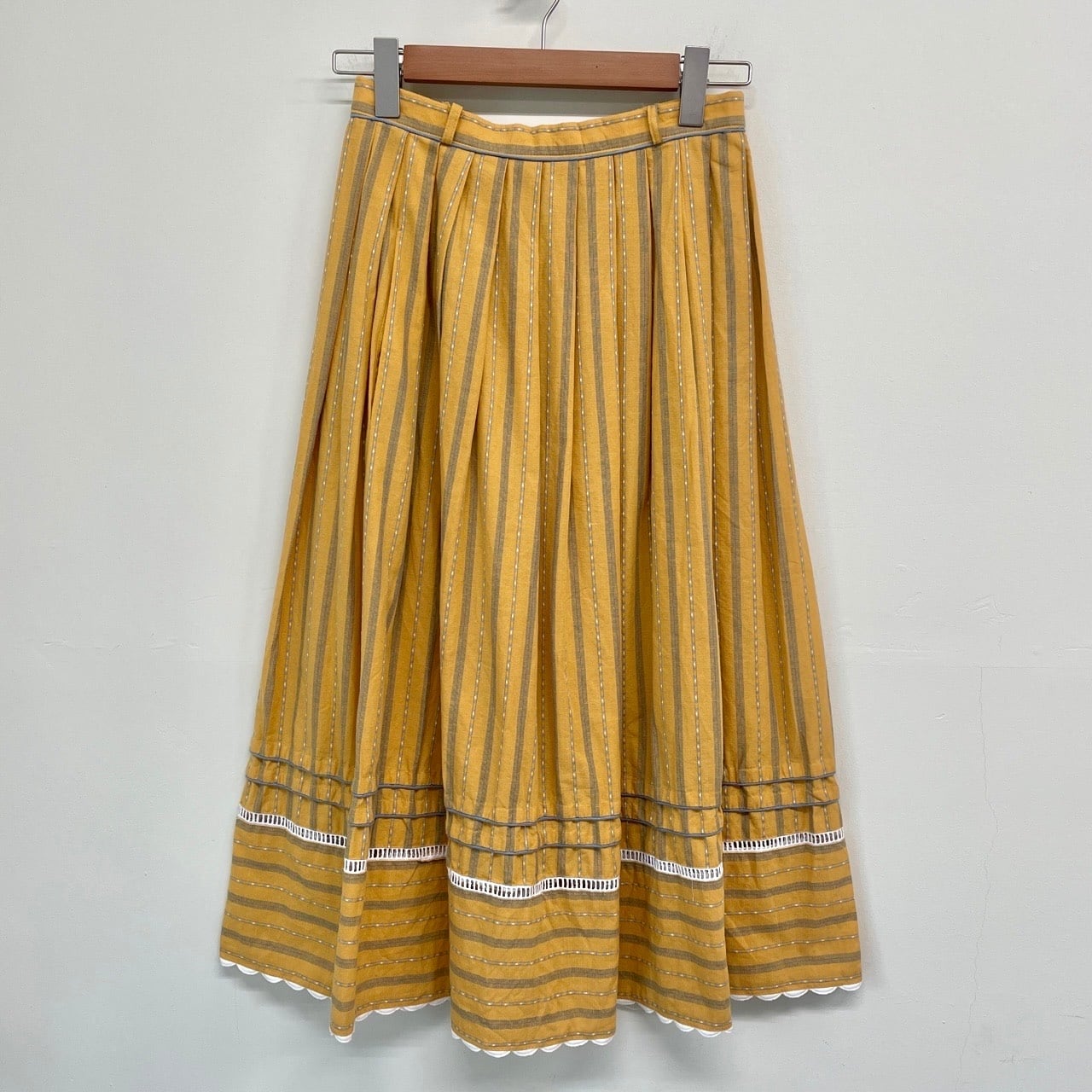 古着 レトロ ストライプ コットン スカート ヴィンテージ 古着 黄色 イエロー レディース ビンテージ W26 25092005