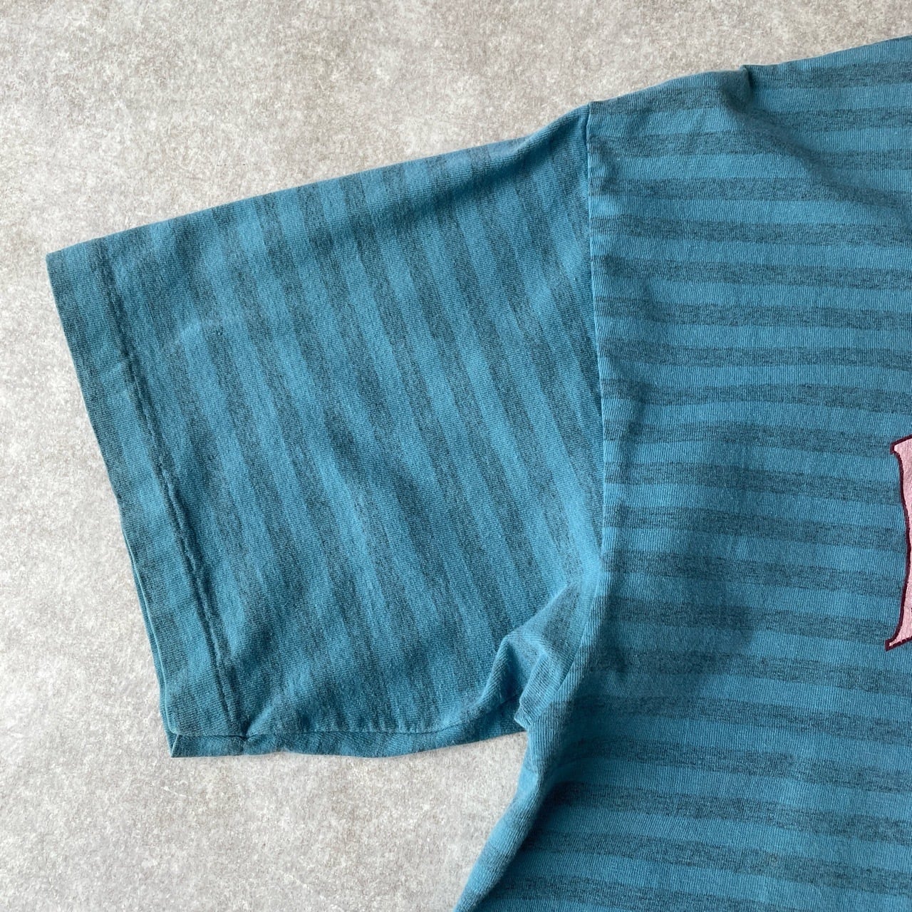 90s USA製 YOUTH ALIVE ボーダーTシャツ ヴィンテージ 古着 カレッジロゴ 水色 ライトブルー エンブレム 90年代 シングルステッチ ビンテージ XL 25092110