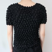 古着 ポップコーントップス 黒 ブラック 無地 レディース ヴィンテージ 90s ビンテージ 90年代 半袖 25092701