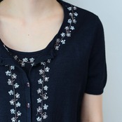 90s 花 刺繍 シルク 半袖サマーニット ヴィンテージ 古着 黒 ブラック レトロ カーディガン プルオーバー ブラウス レディース NORTON McNAUGHTON 90年代 ビンテージ S 25092702