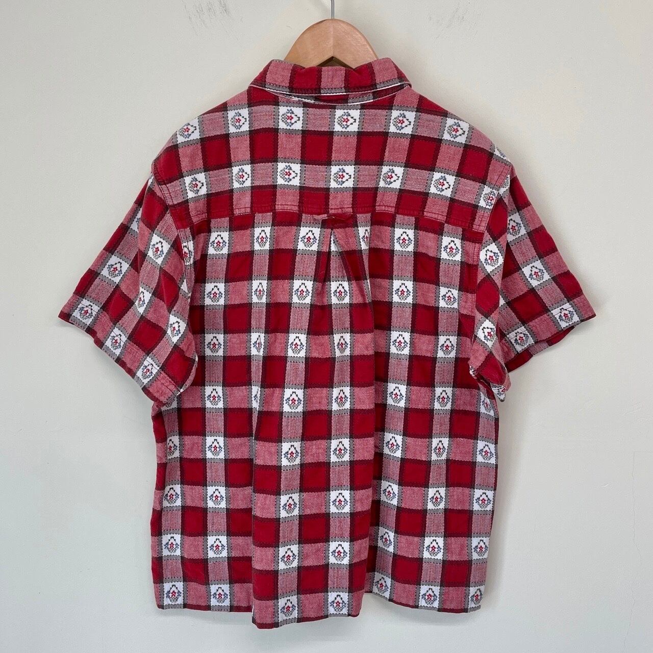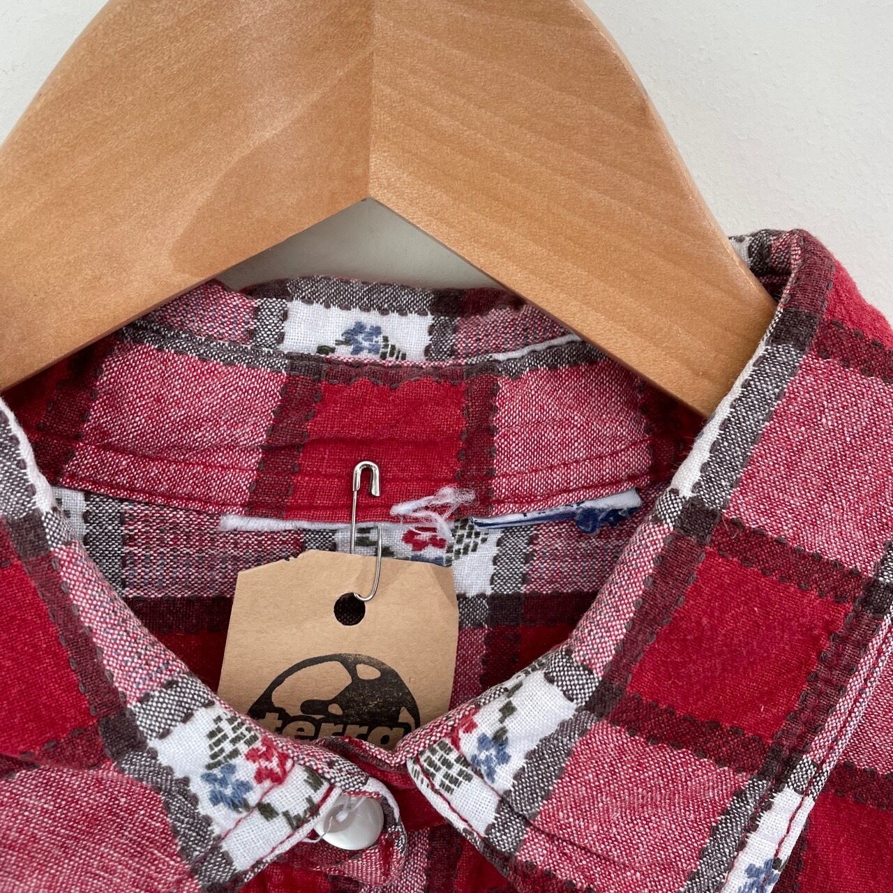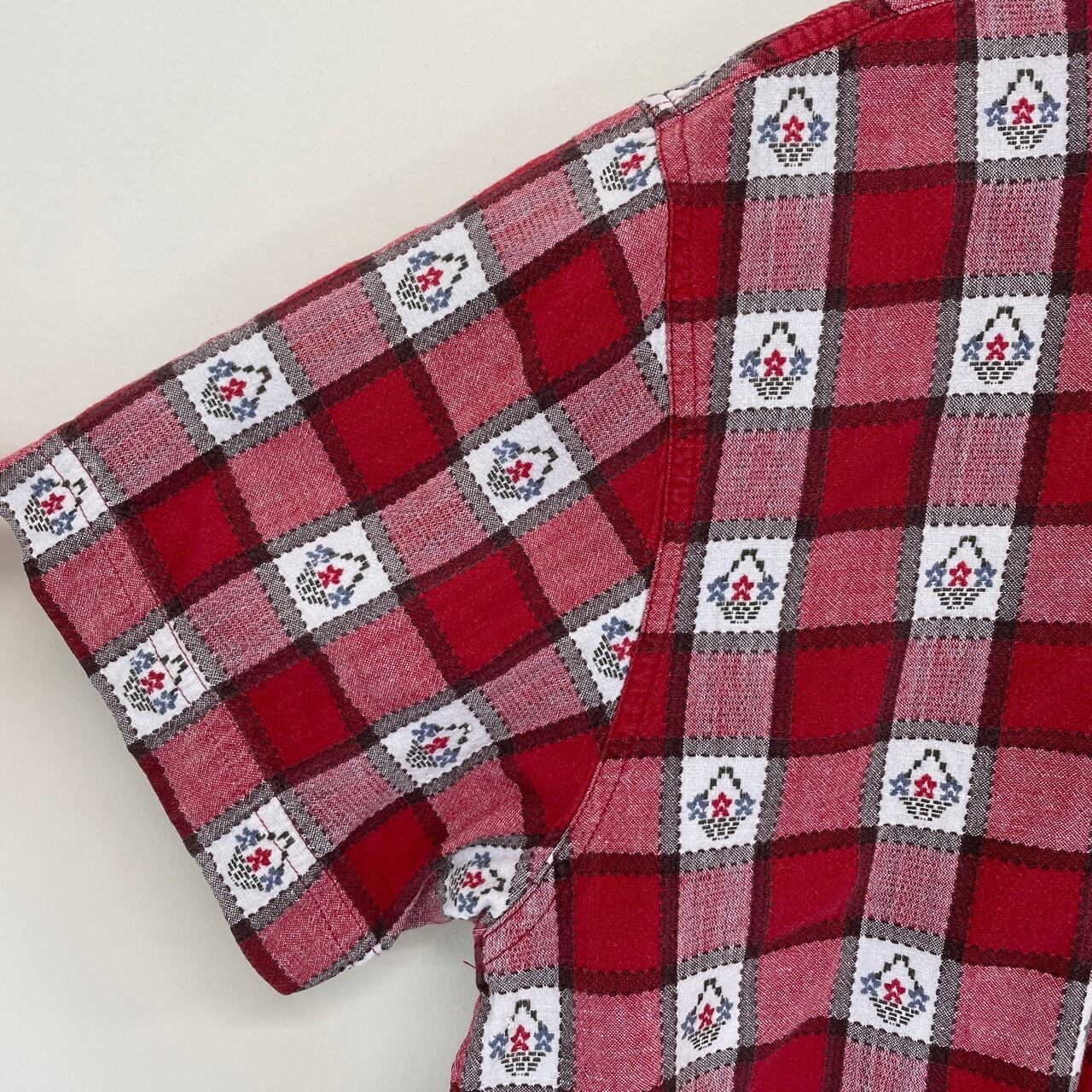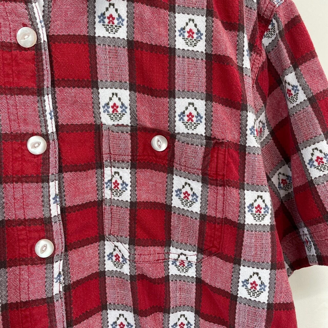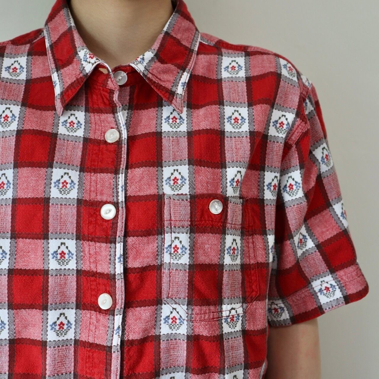 90s 花 刺繍 チェック 半袖シャツ ヴィンテージ 古着 レトロ コットン 赤 レッド レディース 90年代 ビンテージ フラワー 25092703