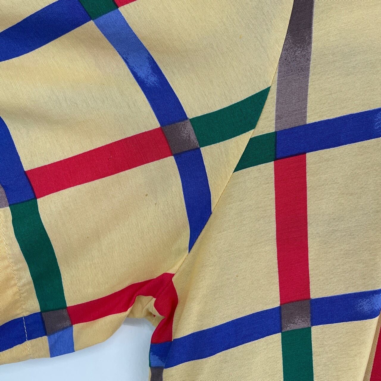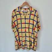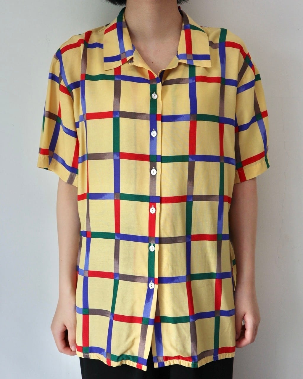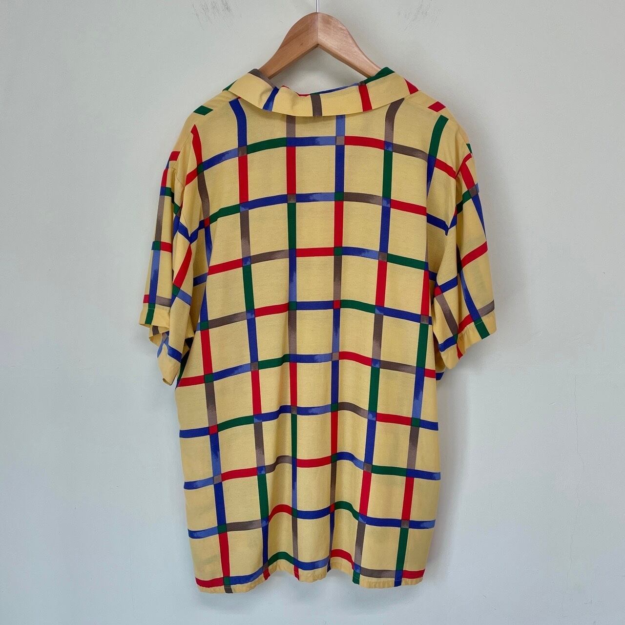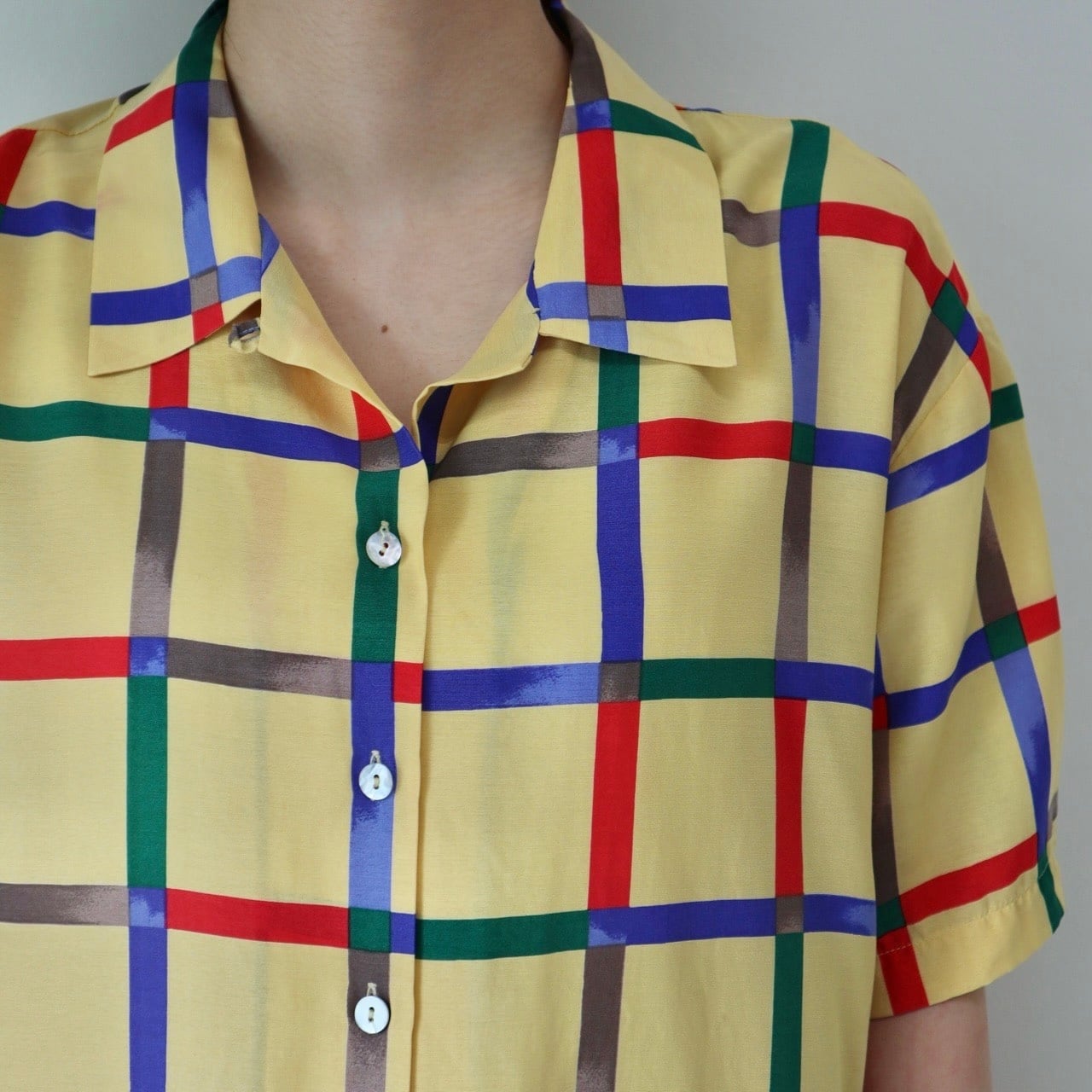 80s 90s フランス製 チェック オープンカラー 半袖シャツ ヴィンテージ 古着 ボックスシャツ 黄色 イエロー レーヨン シルク レディース FRANK ALEXANDRE 80年代 90年代 ビンテージ 25092704